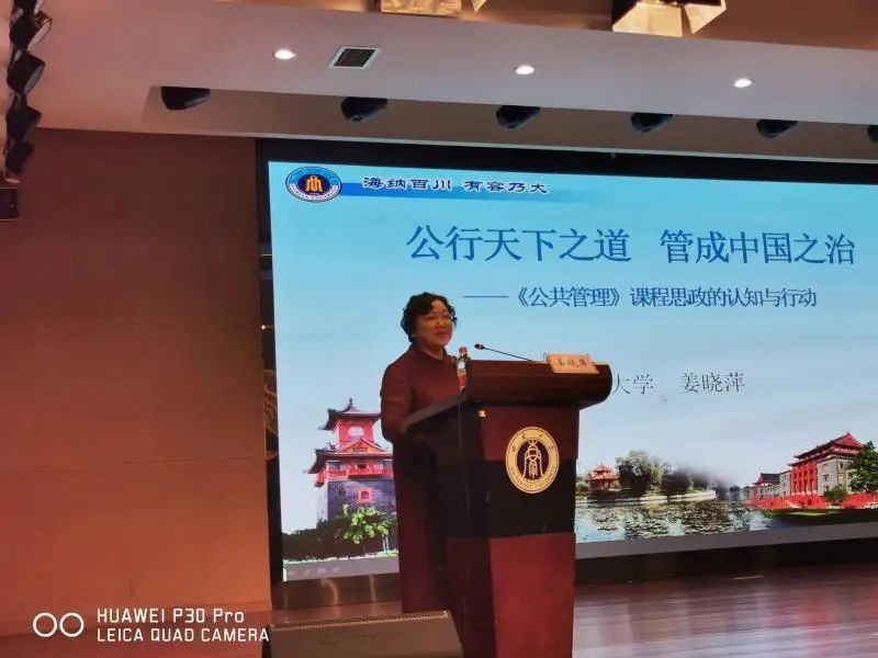 十大买球官网姜晓萍教授结合自身教育实践,以《公行天下之道,管成中国之治》为题,从认知本来、领悟原来、面向未来三个角度对思政教育建设做出全面分析。
