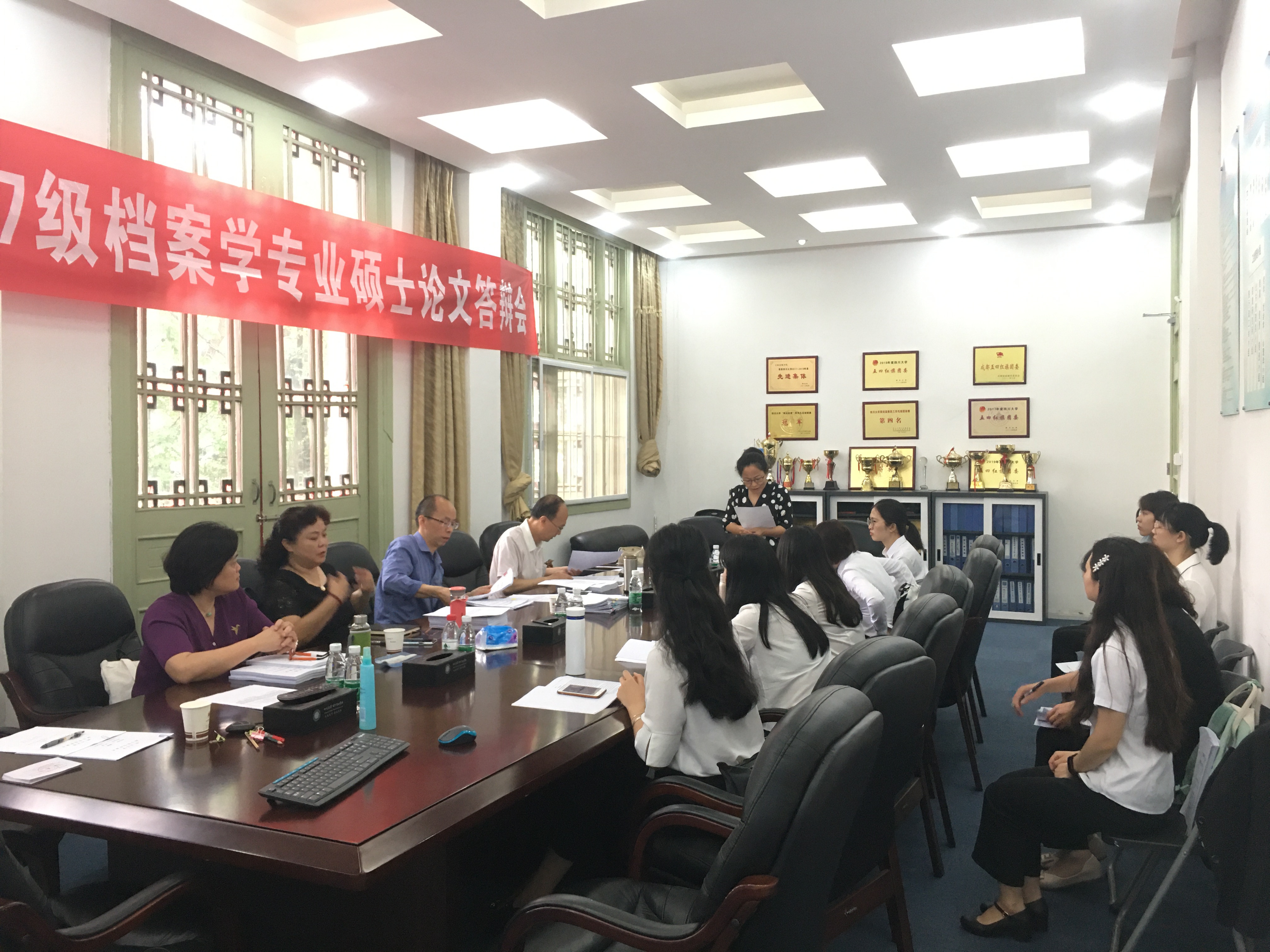 系主任王萍副教授表达了对答辩专家出席本次答辩会的衷心感谢,对档案学专业硕士研究生所展现出的学术态度给予了充分肯定,祝贺答辩学生顺利通过。此外,王萍副教授还要求答辩学生要充分汲取答辩专家的意见,对论文不足之处认真修改完善。