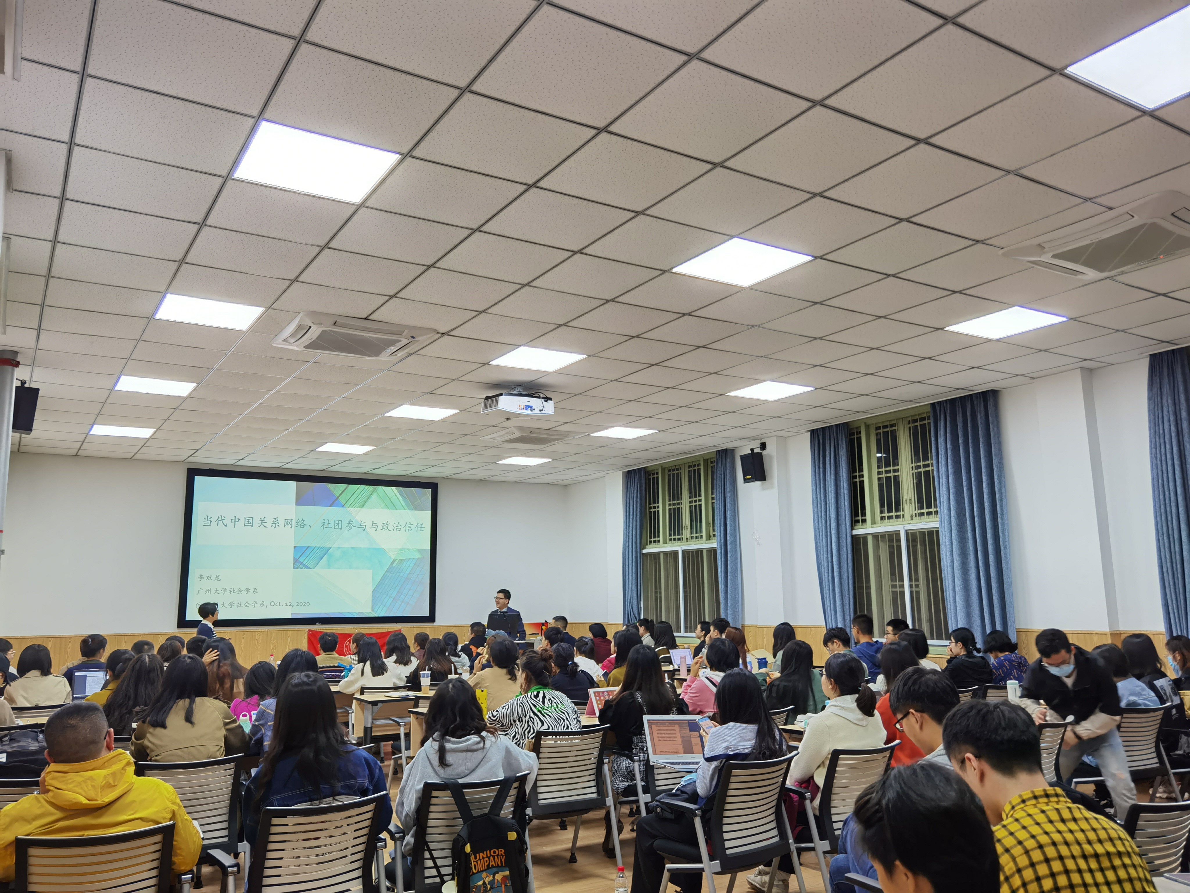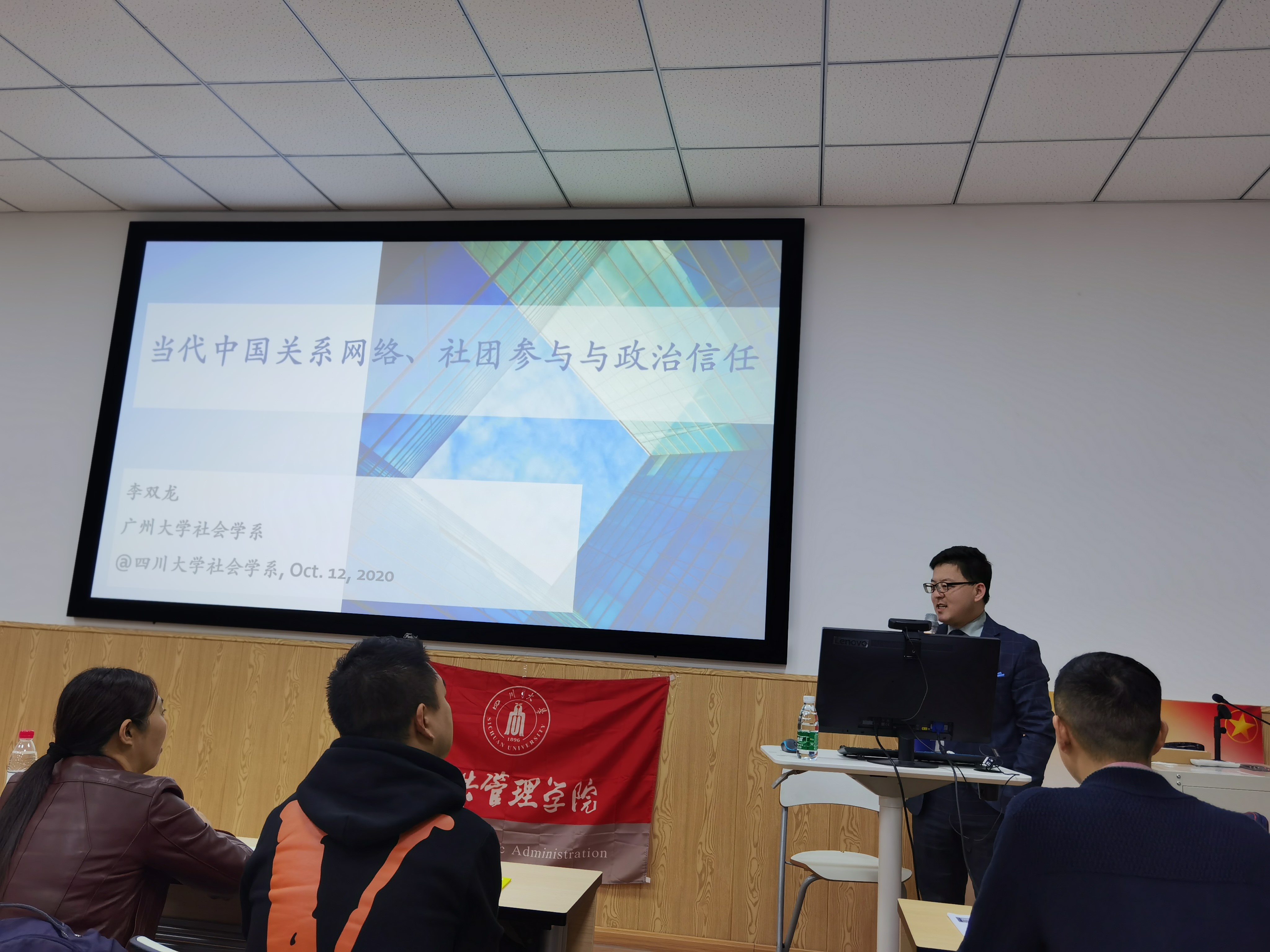 2020年10月12日晚上7点,十大买球的正规网站社会学·华西论坛系列讲座第八期成功举办。广州大学社会创新研究中心副主任、社会学系李双龙副教授在十大买球官网106报告厅开展了主题为“当代中国的关系网络、社团参与和政治信任(Guanxi Networking, Associational Involvement, and Political Trust in Contemporary China)”的精彩讲座。讲座由社会学与心理学系郑莉副教授主持,社会学与心理学系、兄弟院校师生近百人参加了讲座。