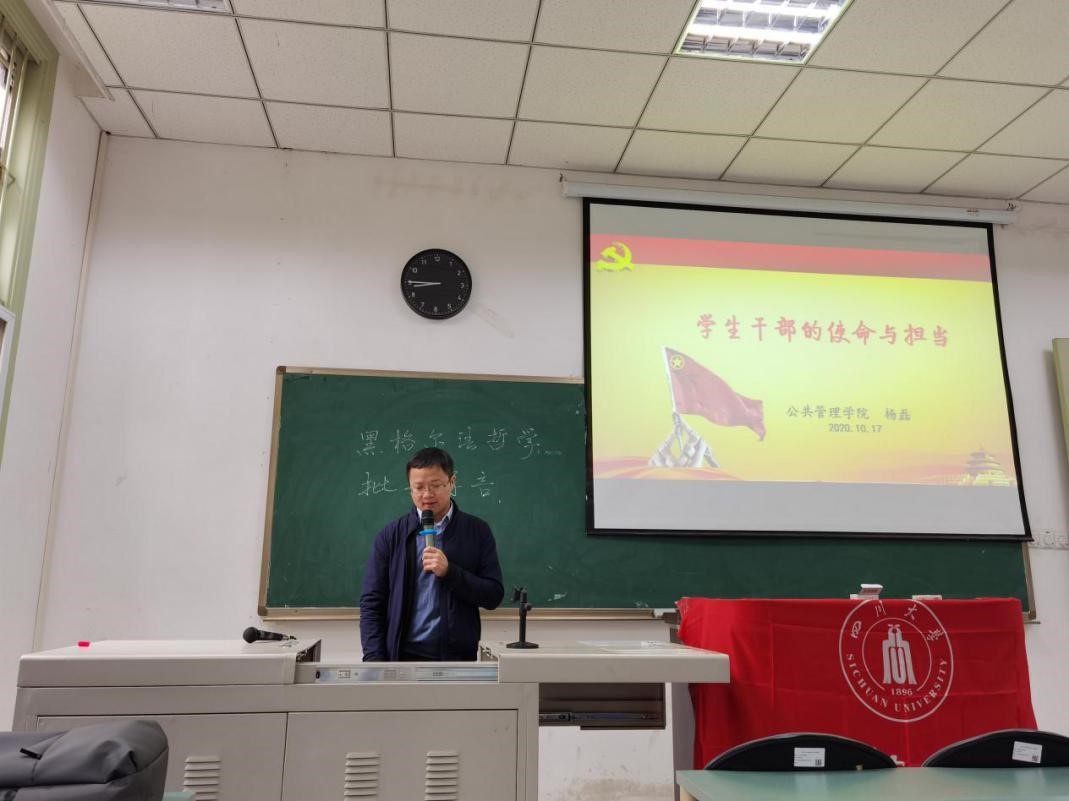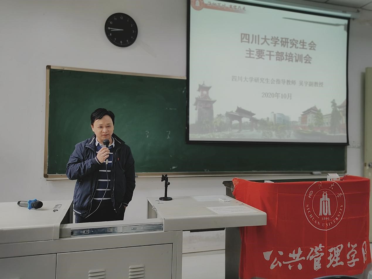吴宇副教授以《如何做好研究生干部》为题,从为什么要做学生干部、怎样做好学生干部两方面出发,首先介绍了十大买球的正规网站研究生会的指导思想、组织性质及干部的培养体系,接下来,吴宇副教授向参会学员强调,做好研究生会干部的核心是坚持研究生会干部自我管理,自我教育,自我服务。最后,吴老师希望研究生会干部具有过硬的政治素养,并对公管研究生会的学生干部提出了更高的要求。