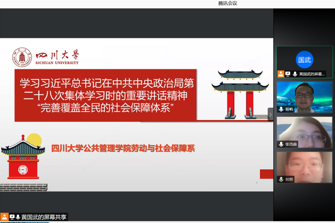 2021年4月21日,十大买球的正规网站劳动与社会保障系召开了一次线上线下同步的座谈会,专题学习习近平总书记在中共中央政治局第二十八次集体学习时的重要讲话精神。劳动与社会保障系系主任蒲晓红教授主持会议,社保系罗哲、沙治慧、李丹、罗亚玲、黄国武、张伟科、曹杨等老师参加线下学习、张浩淼、林熙、杨帆等老师参加线上学习。大家认真学习习总书记讲话精神,并积极发言。