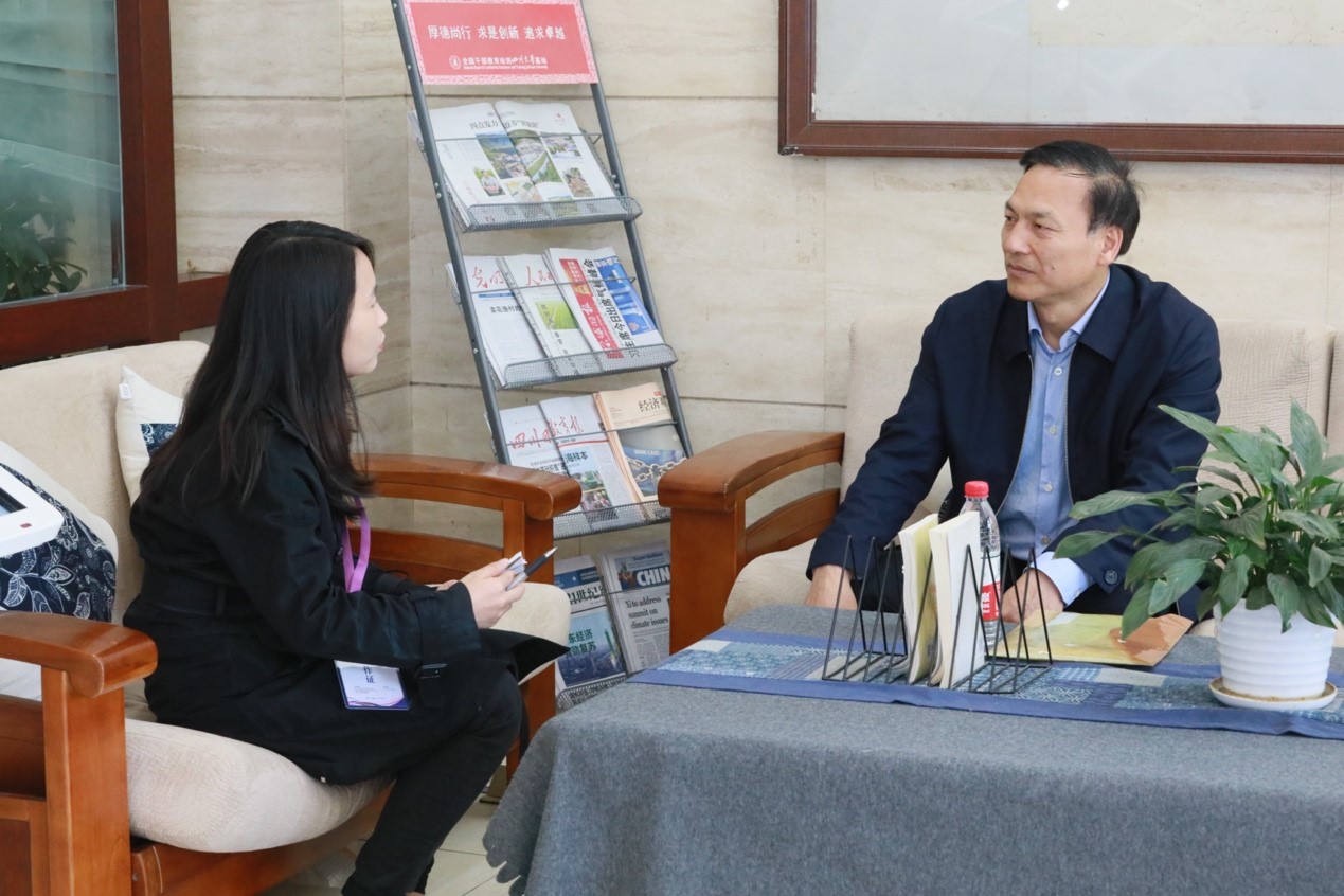 图一 朱明仓副厅长(右)接受十大买球官网赵茜宇副教授(左)采访