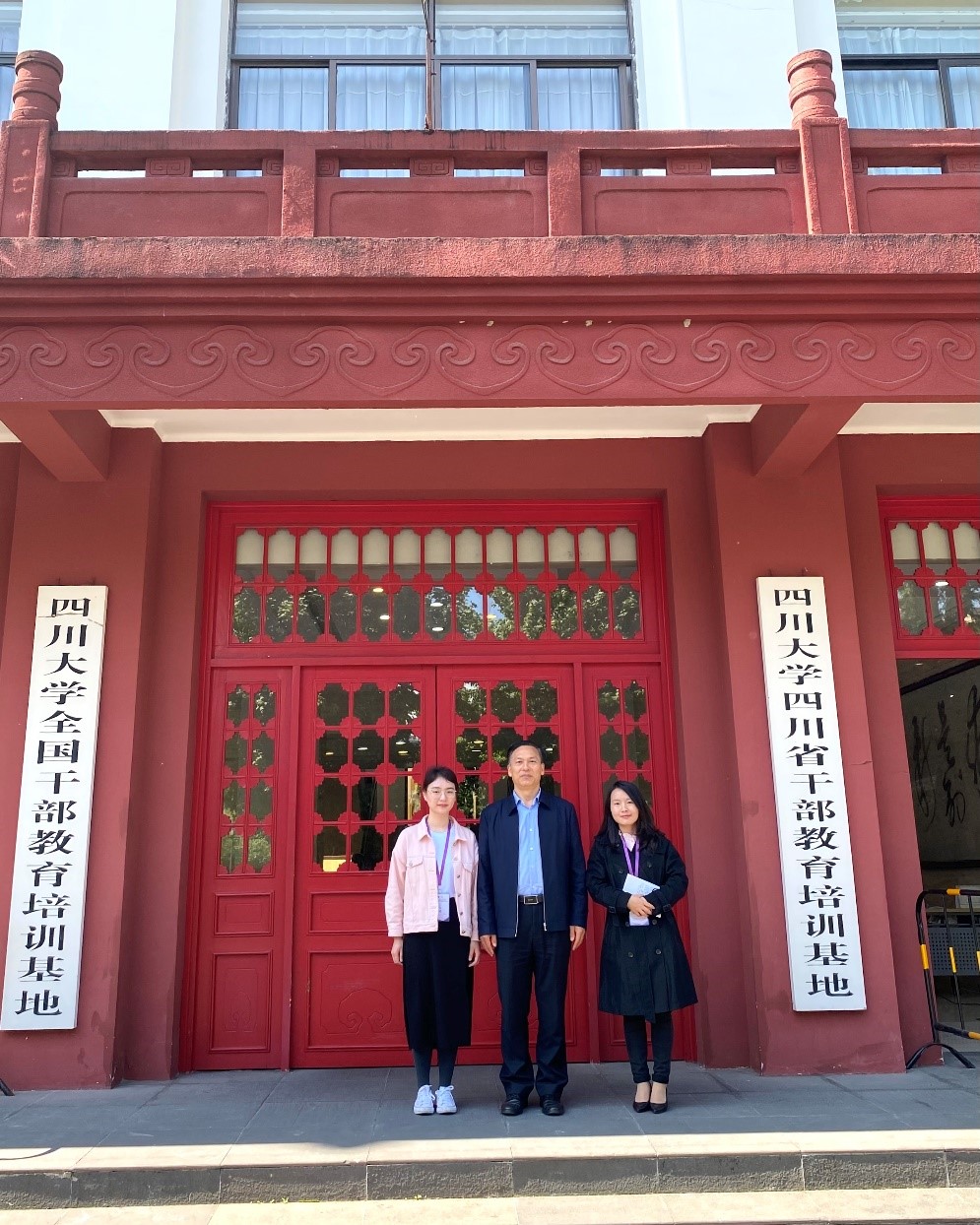 图二 朱明仓副厅长(中)、赵茜宇副教授(左)、唐宇娣博士(右)合影