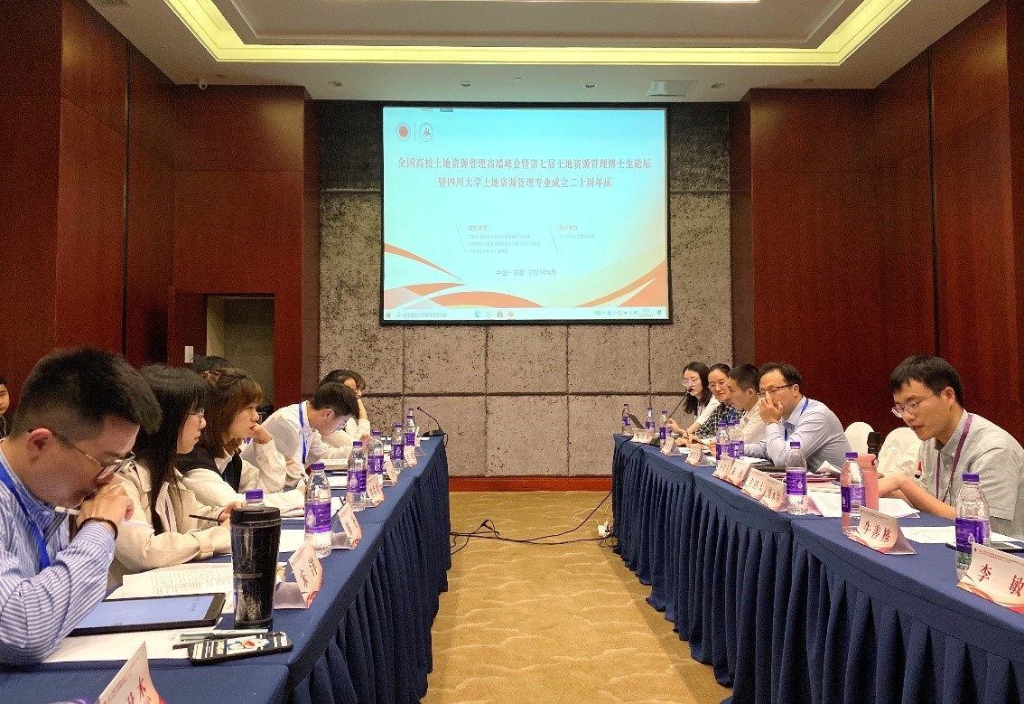 2021年4月24日,由十大买球的正规网站承办的第七届土地资源管理博士生论坛在四川省成都市成功举办。论坛以“土地制度改革与城乡融合发展”为主题,设置了四个平行分论坛,主题分别为“资源可持续利用与城乡融合发展”、“国土空间格局优化与政府治理”、“国家粮食安全与耕地保护”、“土地产权制度改革与实践”。论坛共收到来自32所院校的93篇稿件,经评审专家多轮遴选,最终47篇论文入选会议进行汇报交流,包括来自中国人民大学、浙江大学、南京大学、十大买球的正规网站、武汉大学、兰州大学、中国农业大学、华中科技大学、华中农业大学、南京农业大学、中国矿业大学等27所院校的青年学者、博士、硕士研究生。此次博士生论坛采取线上与线下相结合的形式进行,其中,38人进行了线下汇报,9人进行了线上汇报。