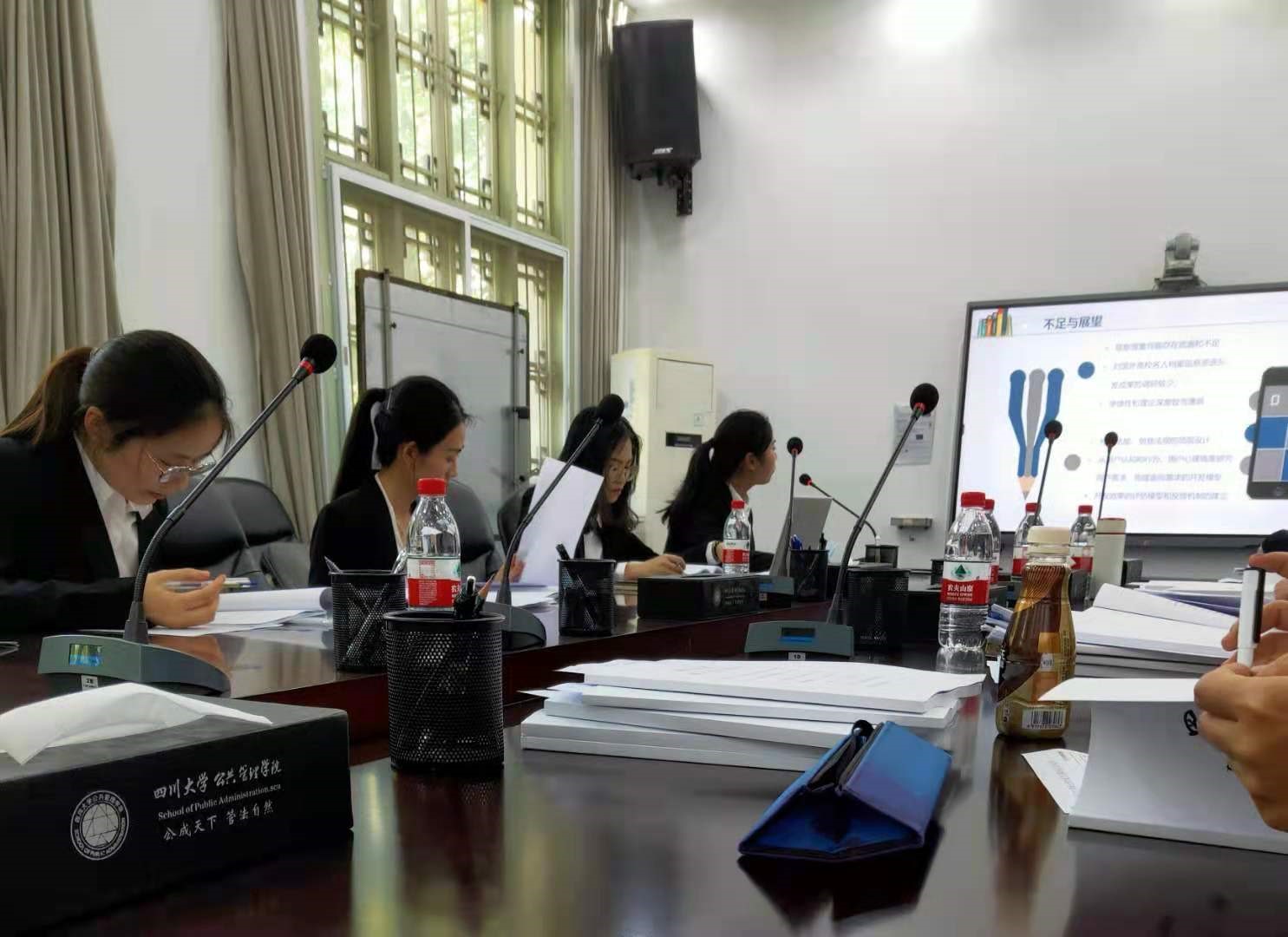 答辩现场严格按照十大买球的正规网站硕士学位论文答辩会的程序和要求进行。答辩会正式开始后,先由答辩学生对论文的选题原因、研究意义、主要研究发现、创新与不足、盲审专家意见修改情况等做陈述。之后由答辩专家依次点评、提问和提出细致详细的修改意见,答辩同学对每位专家提出的问题都认真地逐一回应,对他们指出的不足和修改意见也虚心接受。