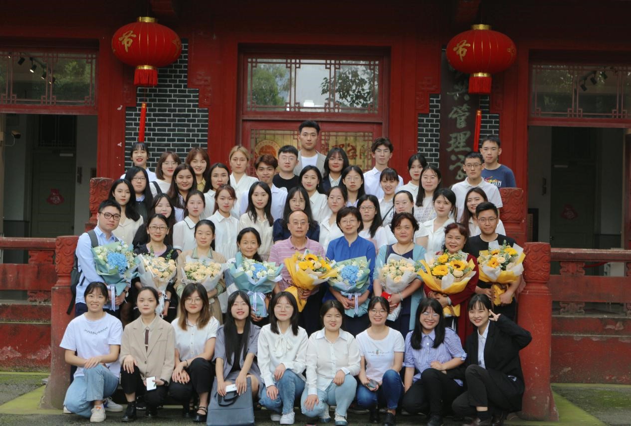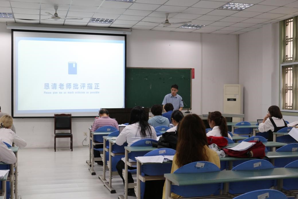 本次答辩会分为三组,分别于学院楼206、210、214室同步进行。各组同学按照答辩顺序,依次就论文的研究背景、研究思路、研究方法、研究内容以及研究结论等作简要陈述。答辩老师从论文格式、文章结构、语言组织、参考文献等方面进行针对性提问,并就如何修改论文给出建设性的意见和建议。同学们对所提问题逐一回应,虚心接受老师们宝贵的指导意见。会后,全体师生于学院楼前合影留念。