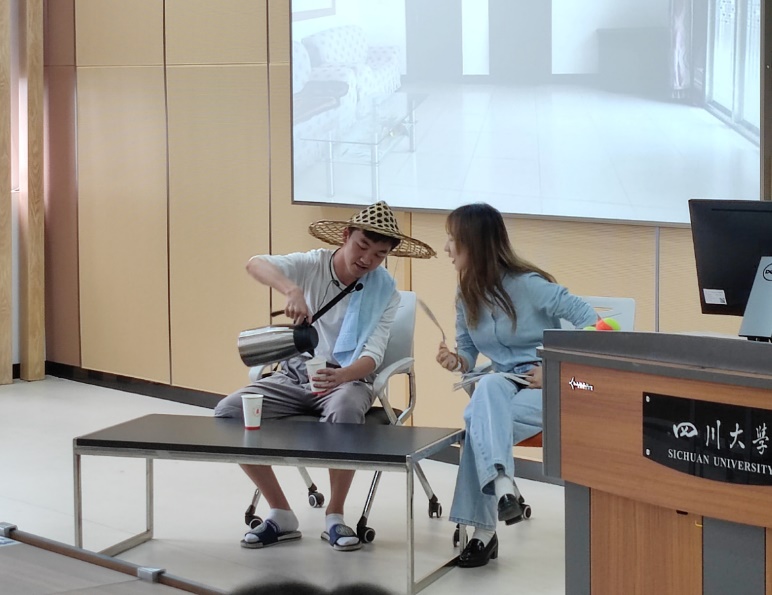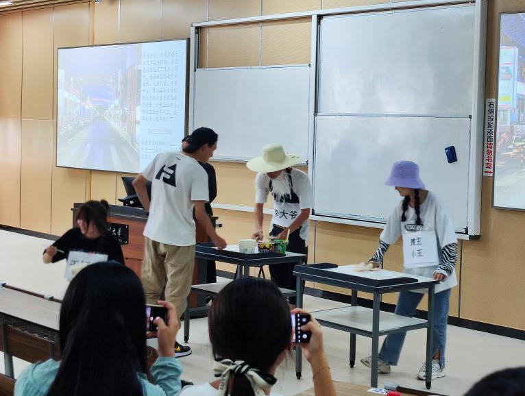 上午八点十五分,“模拟市场”大赛在同学们的掌声中正式开始,十二支团队按照事先确定的抽签顺序依次进行了展示。在展示过程中,同学们充分利用多媒体,精妙构思,围绕着扶贫脱困、生态治理、公共服务、危机管理等社会热点问题进行了现场表演。观众们时而陷入沉思,时而捧腹大笑。在每组表演完成后,评委老师会进行打分,并由相关工作人员进行汇总。