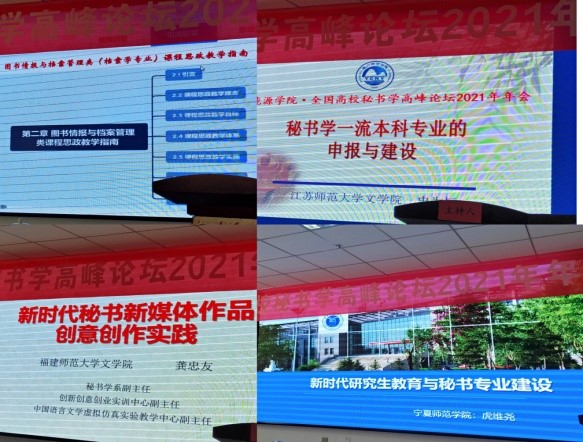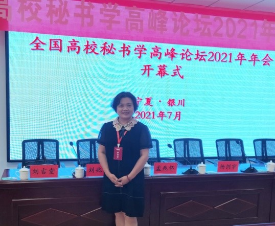 2021年7月19到22日,十大买球的正规网站秘书档案学系陈丽教授应邀参加了在银川市召开的全国高校秘书学高峰论坛年会。来自十大买球的正规网站、上海大学、上海外国语大学、苏州大学、河南大学、哈尔滨师范大学、广西师范大学等学校的秘书学档案学专家学者以及一部分开设秘书学专业课程的高校专业教师参加了会议。年会上大家对秘书学档案学相关课程建设,秘书专业课程思政教学方案及教学计划、秘书学档案学实训及实验室建设、秘书学档案学教材建设、秘书学档案学等相关专业评估及一流专业建设和申报等相关问题进行了广泛讨论和交流。