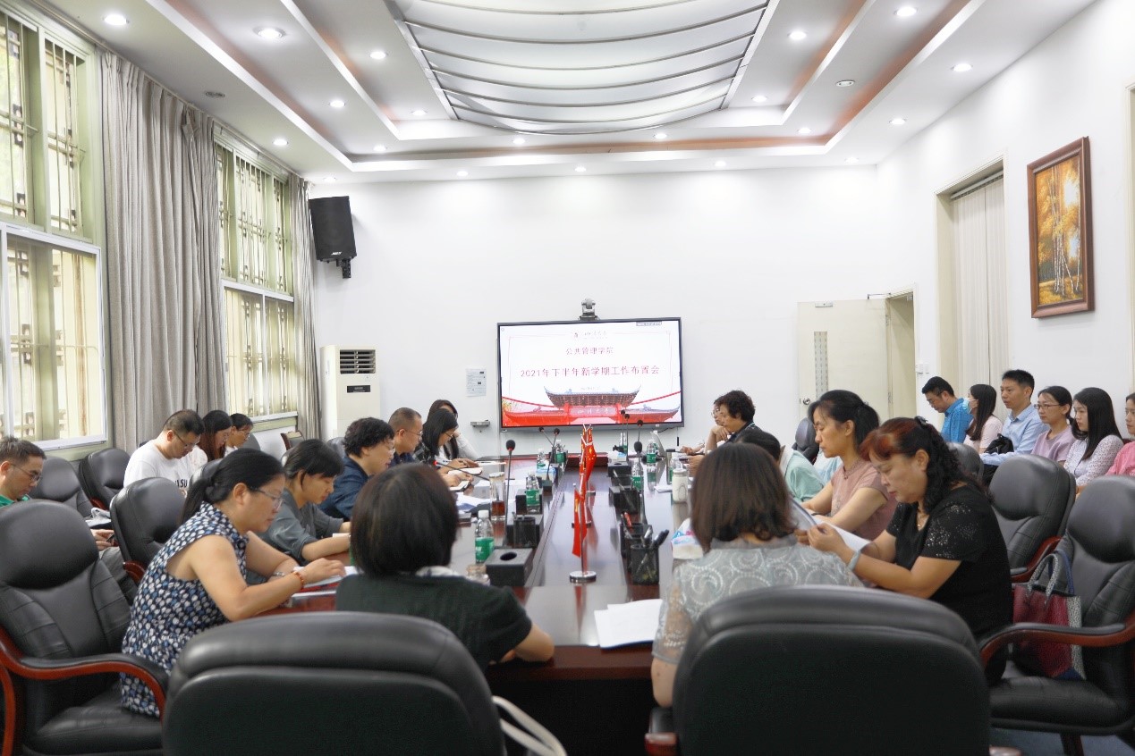 9月1日下午,十大买球官网在萃文楼三楼会议室召开2021年下半年新学期工作布置会,学院班子、两委委员、支部书记、系主任、科级干部及全体教职工参会。会议由学院党委书记姜晓萍教授主持。