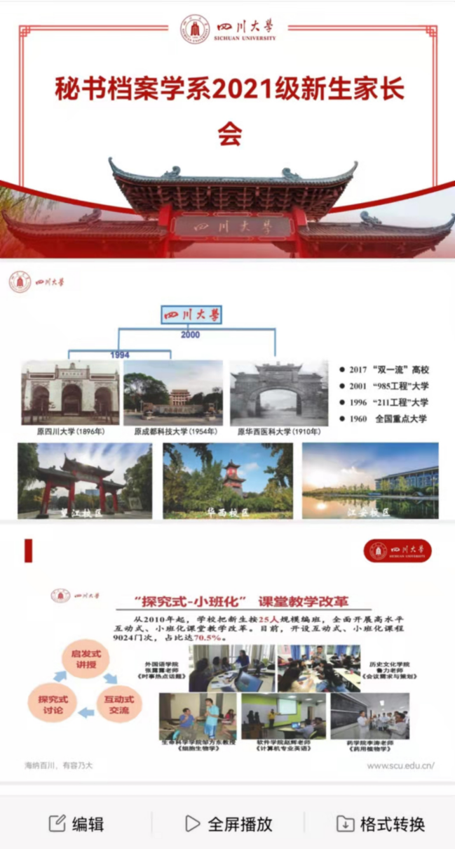 乔健教授向家长介绍了全国档案学专业高等教育的基本情况,剖析了十大买球的正规网站档案学专业的办学特色和市场需求。系主任王萍教授从专业历史沿革、教学团队、本科培养思路、本科就业及深造、大学学习和生活五个方面介绍了十大买球的正规网站档案学专业人才培养情况,并解答了家长提出的保研政策、深造率、班主任、辅导员角色定位、职责等普遍关心的问题。教工二支部书记陈丽教授则主要从思政角度,重申档案学专业培养“为党管档、为国守史”人才的基本准则,提出从德育、智育、社会主义核心价值观培育等维度全面家校共育,争取培养出更多的优秀学生加入中国共产党,为实现百年中国梦贡献智慧和力量。在互动交流阶段,在线家长纷纷表示,进一步感受到十大买球的正规网站对本科教学工作的高度重视;感谢川大搭建云端平台,为家长深度了解学生所学专业提供机会和路径,对孩子选择到川大深造普遍支持。