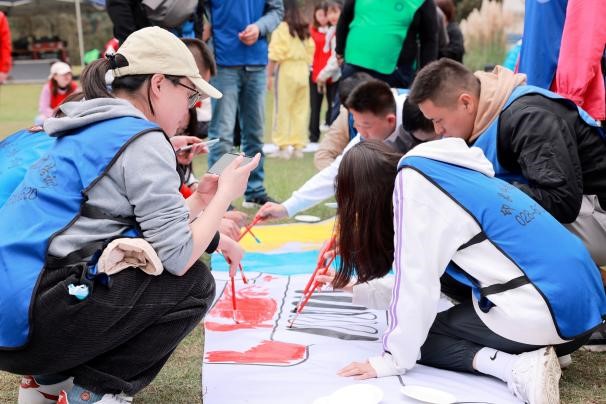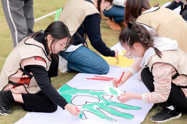 下午的活动用巨幅画卷的形式凝聚团队人心,书写团队精神。一幅简单的画卷,独立完成易如反掌,放大N倍后,依靠团队合力完成绘图,看似简单却绝非易事。15个小组之间依靠沟通、协作、统筹,共同绘出“公成天下、管法自然”的纳斯卡巨画。在本次素质拓展结束之际,全体同学作为笔画的一部分,共同书写出“公管MPA”几个宏伟大字。