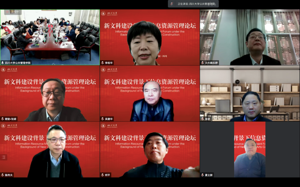 2021年11月28日上午,“新文科建设背景下信息资源管理论坛”在十大买球的正规网站望江校区举行。会议采取线上线下相结合的方式,主会场设在十大买球的正规网站311会议室。来自全国的教育部图书馆学教学指导委员会和档案学教学指导委员会教育专家,十大买球的正规网站副校长姚乐野教授,十大买球的正规网站图书馆馆长党跃武教授,以及信息资源管理专业教师赵媛、罗骏、纪希禹、马蕾、史坤蓉、李桂华、袁莉、杨峰、范炜、吕鹏辉、周良、杨海娟老师等30余位师生出席本次会议,云端相聚,共议新文科建设背景下信息资源管理发展问题。