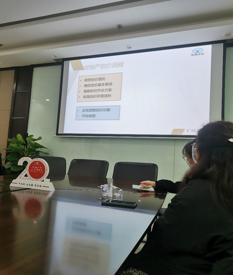 恒通评估公司合伙人符骝先生就估价报告的具体内容进行了展示。从房地产估价规范、房地产估价流程,到四种估价方法的选择以及其中的重难点为同学们作出了详尽的讲解和说明。为了进一步提升同学们对估价报告的整体把握,符骝学长提供了房地产估价文本样本供同学们传阅学习,并为同学们演示了恒通评估的智能估价系统及线上估价的实操流程。通过对现实估价报告的学习,同学们更加清晰地了解到实务中估价报告的撰写流程和技术细节,同时对自身估价课程报告的完善有了更为明确的方向。