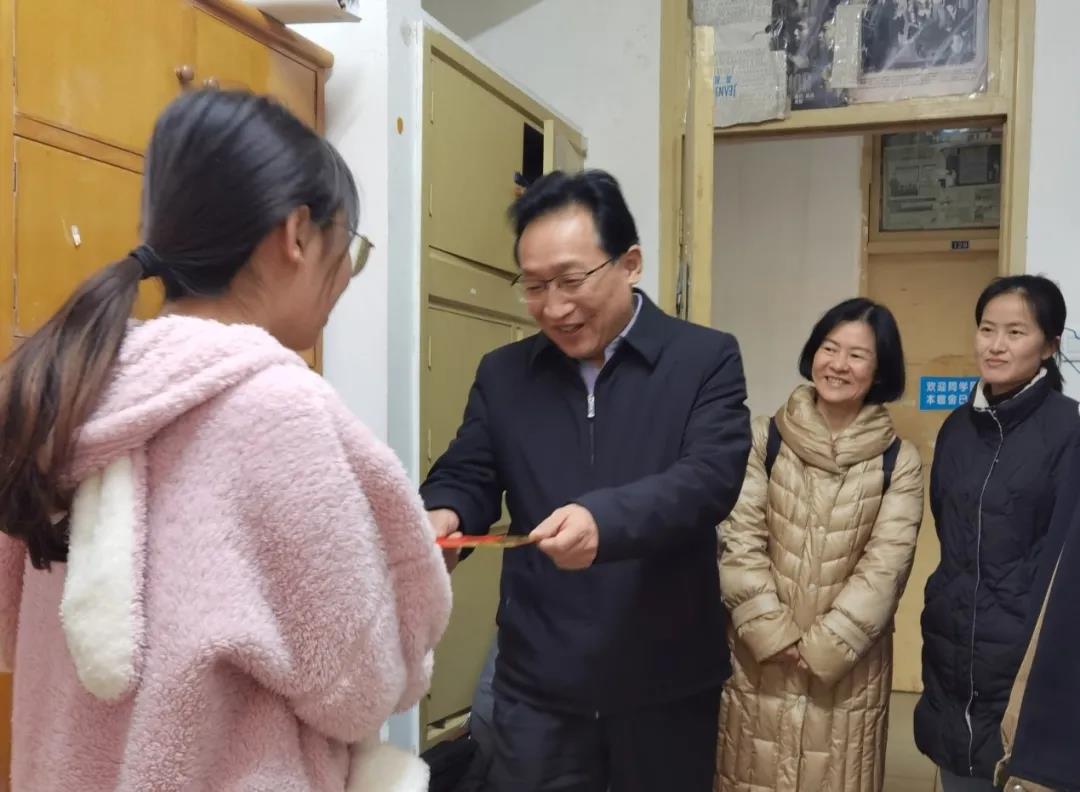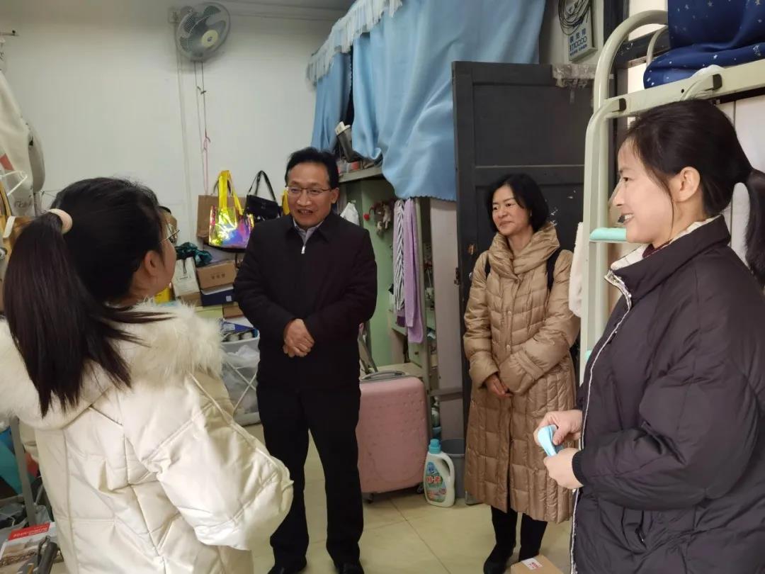 1月29日,伴着蓉城久日不见的和煦暖阳,十大买球官网党委书记韩杰、党委副书记罗亚玲一行走访慰问留校学生,代表学院关心留校学生学习、生活情况,为学生送去节日的问候和新春的祝福,同行人员还有团委书记青杨媚、学生科副科长陈萱源。