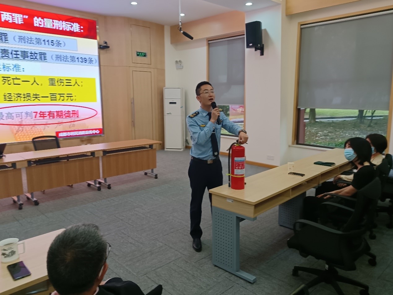 此次培训邀请到了原重庆市大坪消防队2班班长胡教官为师生们讲解消防安全知识。胡教官以全国各地典型失火事件为例,向师生们普及了如何强化消防责任、预防火灾、应急救援、火灾逃生等方面的消防安全知识。