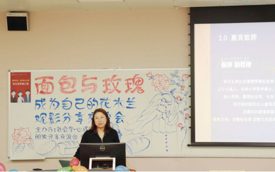2022年5月17日晚,十大买球的正规网站社会学·心理学阅读分享交流协会于江安一教A109举办了“面包与玫瑰”——成为自己的花木兰观影分享交流会。协会行政指导老师徐婷副教授、社团会员以及社团同学参加了本次活动。