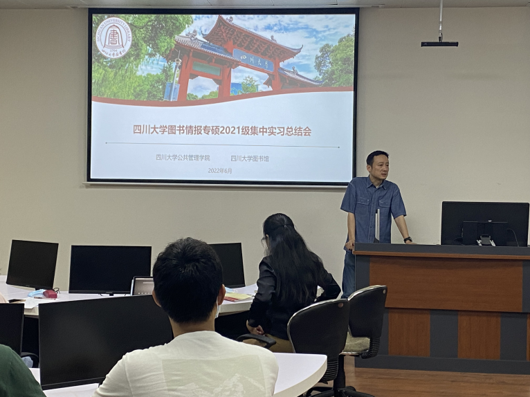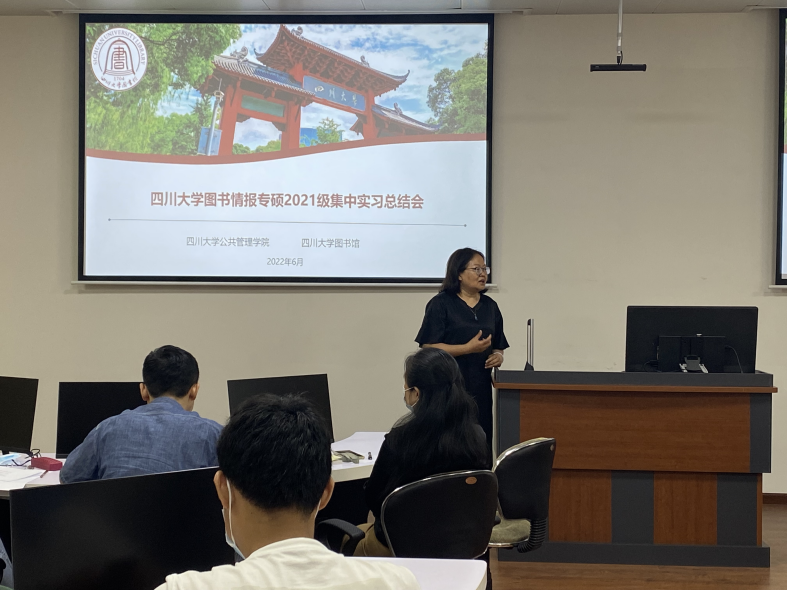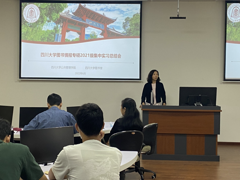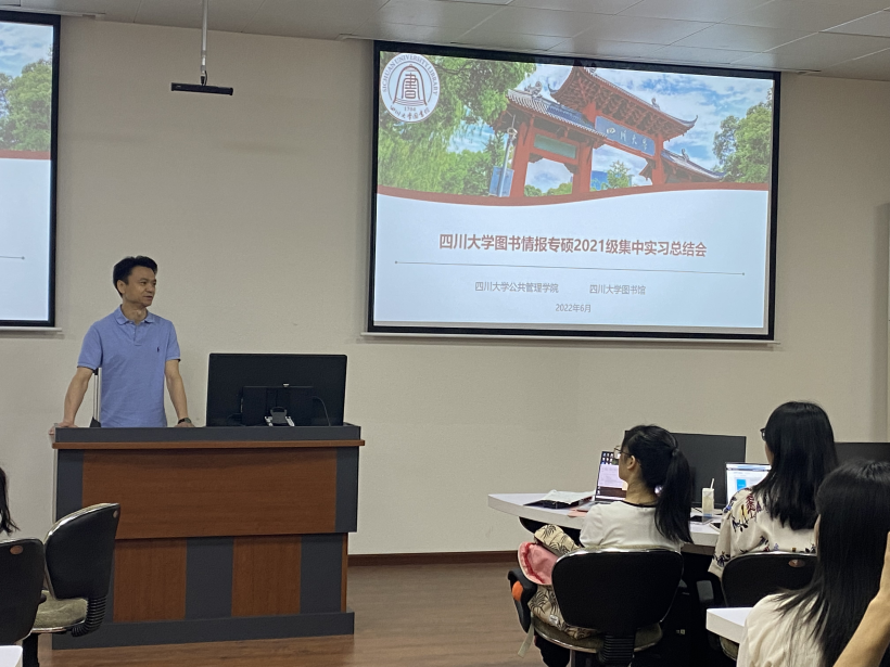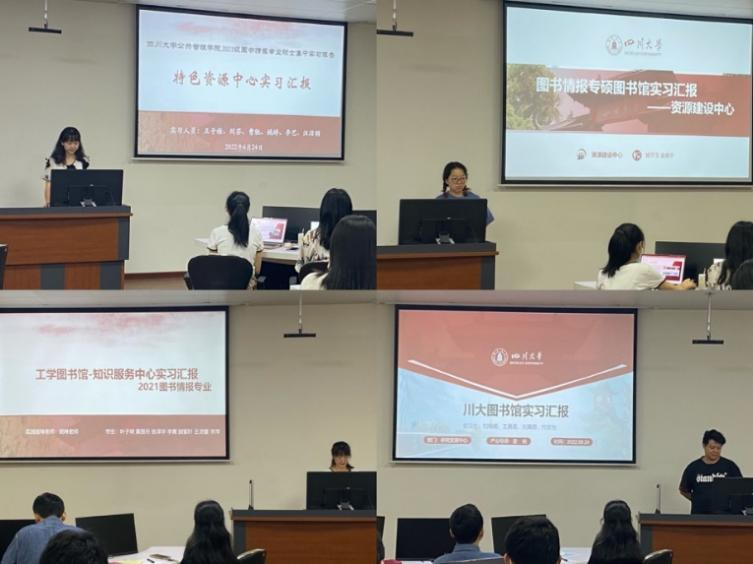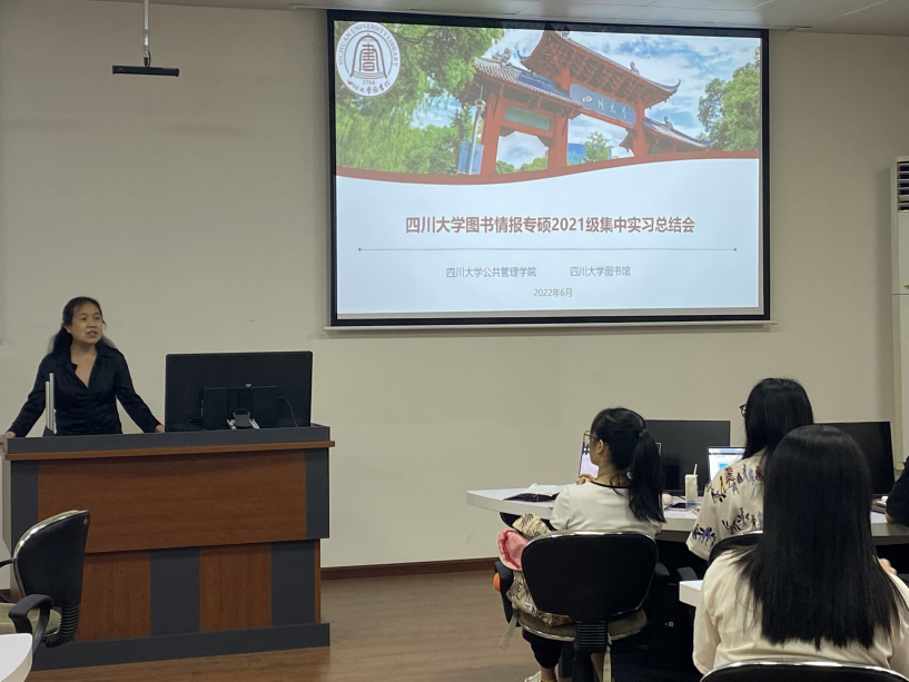 6月24日上午,2021级图书情报全体同学在工学图书馆202进行了实习总结汇报。首先,十大买球的正规网站图书馆姜晓老师、十大买球的正规网站图书情报专硕负责人范炜老师对此次集中实习进行了简要回顾。接下来,分别由在图书馆特色资源中心、资源建设中心、知识服务中心、研究发展中心实习的同学依次作总结汇报。汇报完毕后,4个部门老师分别给出了评价与总结。