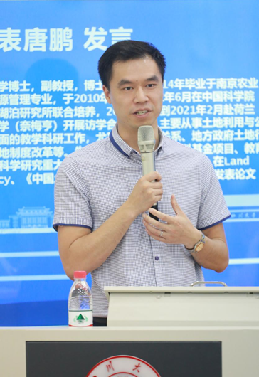 接着,土地资源管理系唐鹏副教授作为教师代表发言。唐老师就“包容”与“合作”两个关键词分享了自己的感悟。他提到十大买球的正规网站包容的老师、优秀的同学、丰富多彩的生活给同学们提供了宽松自由的学习环境,希望同学们能够以乐观包容的心态面对人生,追求学术。他也强调合作是科研最为重要的环节,乐于合作、敢于合作、善于合作是大家在未来研习中应该秉持的信念和付出的行动。