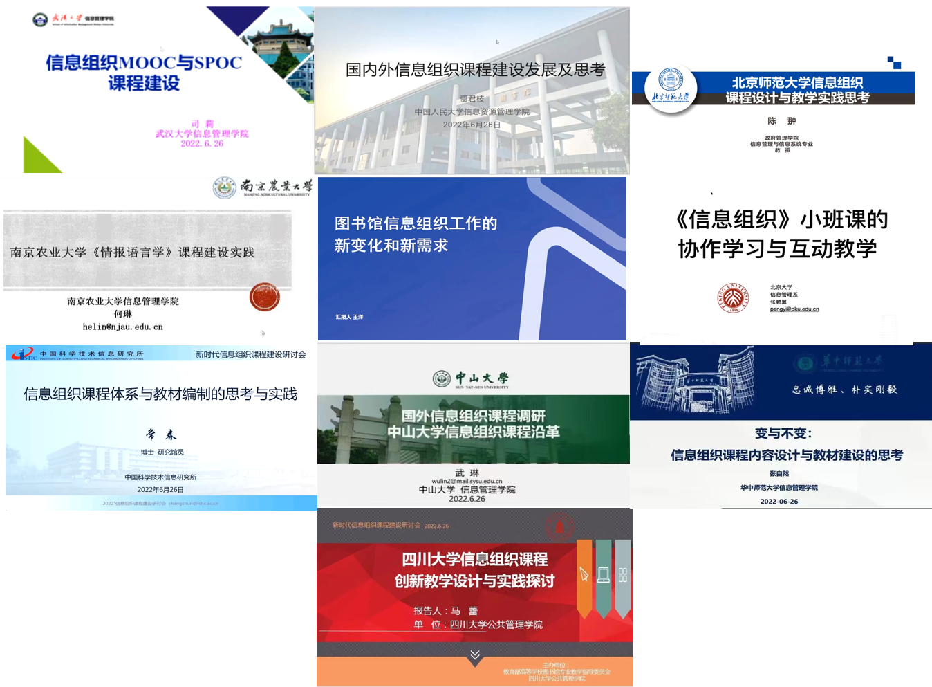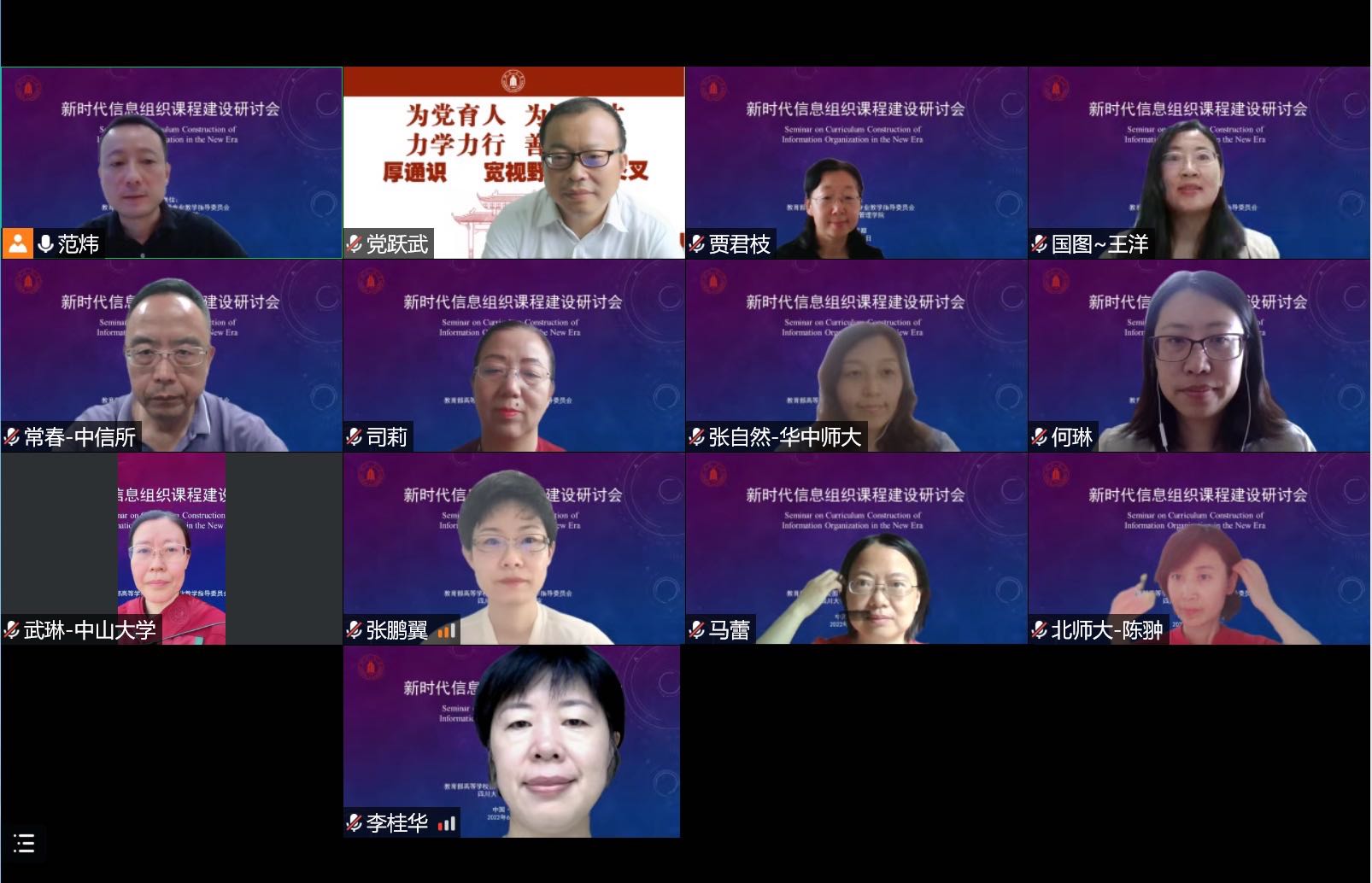 为积极投入国家一流本科专业建设,加快十大买球的正规网站信息资源管理专业的内涵发展,赋能学科专业新活力,以课程建设为抓手,2022年6月26日由教育部高等学校图书馆学专业教学指导委员会与十大买球的正规网站共同主办举办信息组织课程建设研讨交流会,采用腾讯网络研讨会形式,为期1天。