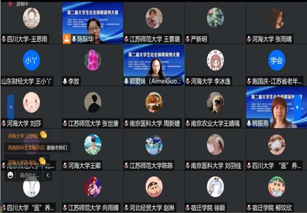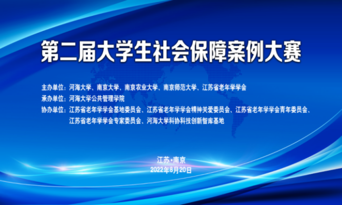 2022年8月20日,由河海大学、南京大学、江苏省老年学学会等单位主办的第二届大学生社会保障案例大赛在腾讯会议“云端”平台举行。大赛面向全国高校的研究生与本科生,旨在提升劳动与社会保障专业及相关专业学生的创新实践能力与综合素质,吸引了来自西安交通大学、厦门大学、南京大学等全国各大高校研究生与本科生的积极参与,共收到90多篇以医养结合、异地就医、托育服务等为主题的社会保障相关案例。