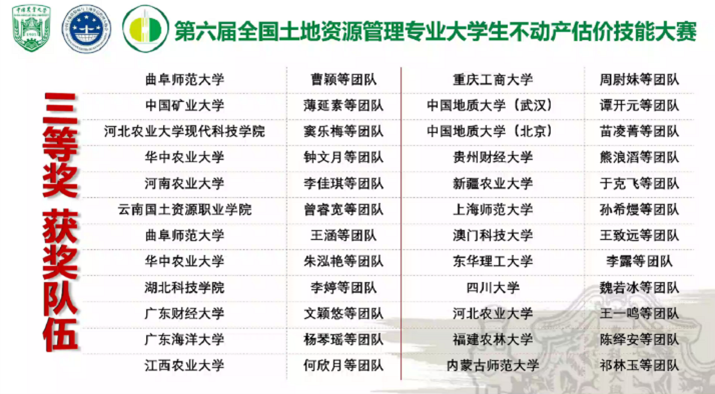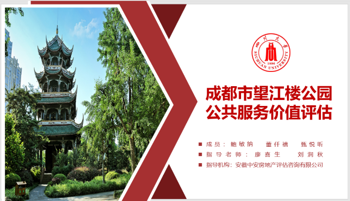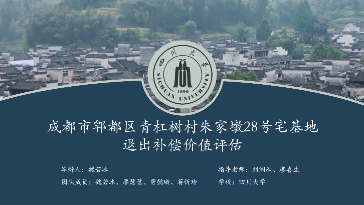 在刘润秋与廖喜生老师的指导之下,由十大买球官网土管系2019级本科生鲍敏纳、董仟禧等同学组成的队伍凭借《成都市望江楼公园公共服务价值评估》估价报告,荣获“二等奖”。此外,由十大买球官网土管系2019级本科生魏若冰、廖慧慧、曹懿璇、蒋忻玲组成的队伍,以《成都市郫都区青杠树村朱家墩28号宅基地退出补偿价值评估》估价报告,荣获“三等奖”。