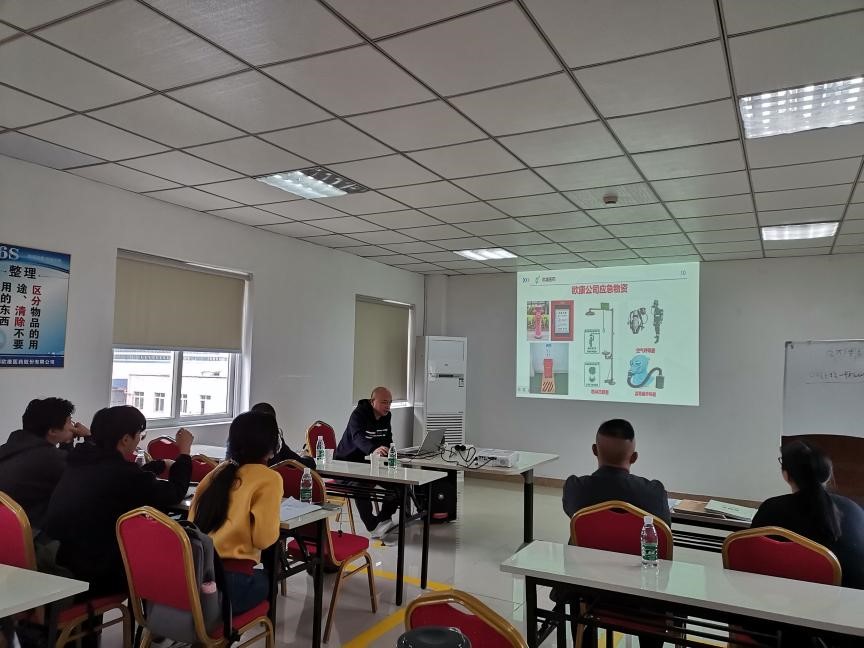 首先,公司安保总监向同学们介绍了成都欧康医药股份有限公司的背景信息和危化品应急管理的构架、职责、制度、风险、隐患、评价、优化等的九大体系,特别是上述体系在安全培训中的重要性,有利于防患于未燃。随后,向同学们详细介绍了生产车间突发火灾事故的现场处置全过程,包括应急预案的启动、现场指挥权的移交、伤员救治、灾后恢复等。