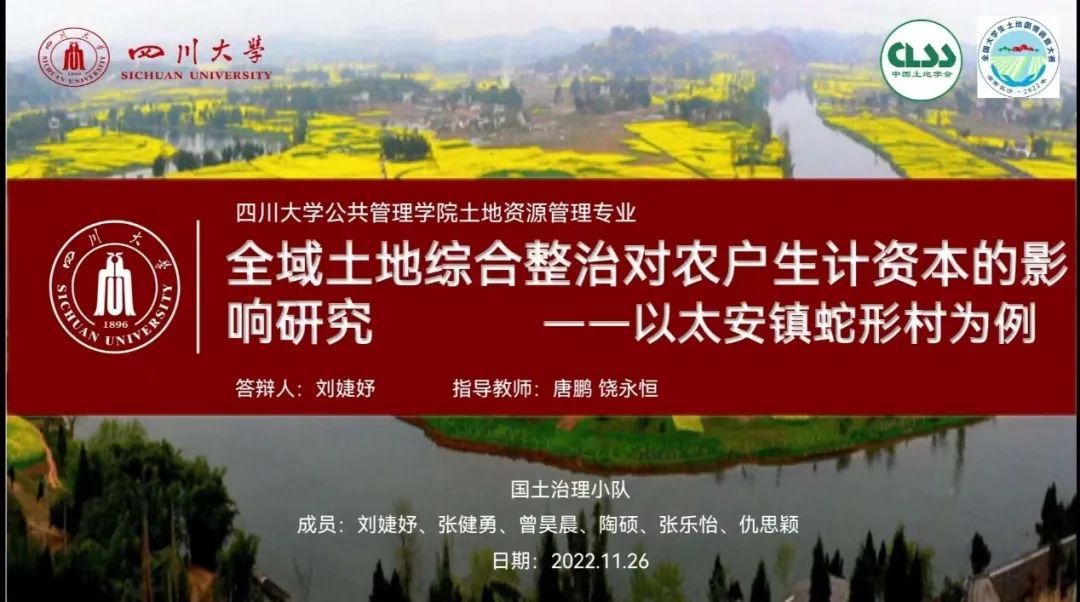 由十大买球官网土地资源管理专业2020级本科生刘婕妤、张健勇、曾昊辰、陶硕、张乐怡、仇思颖组成的国土治理小队,以《全域土地综合整治对农户生计资本的影响研究——以太安镇蛇形村为例》为题,从农户生计资本的角度对全域土地综合整治进行政策绩效评估,为全域土地综合整治的政策优化和可持续建言献策,获得“一等奖”的荣誉。