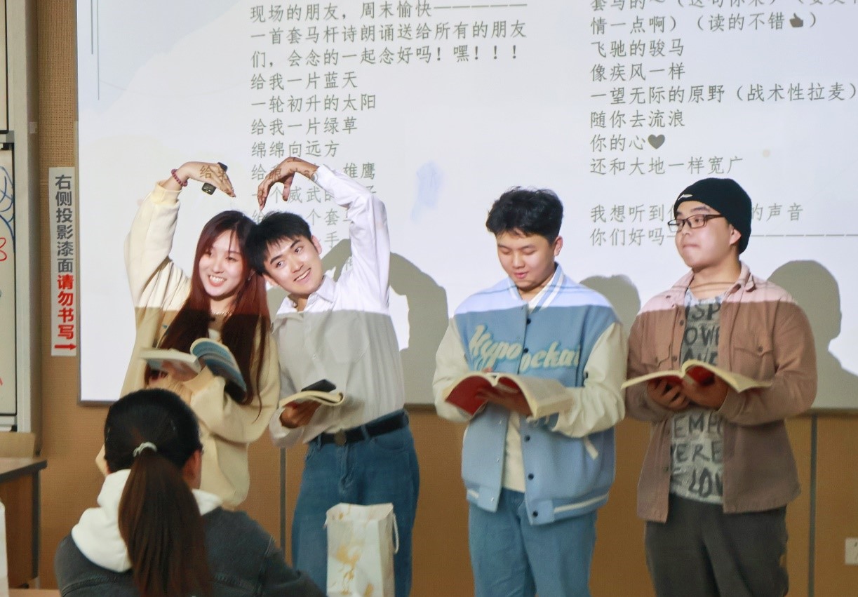 第三个环节——趣味游戏。老师与同学一同上台,共同参与了《听歌识曲》、《你懂我意思吧》、《你画我猜》和《数字炸弹》等游戏。在玩游戏的过程中,师生积极互动,共享乐趣。