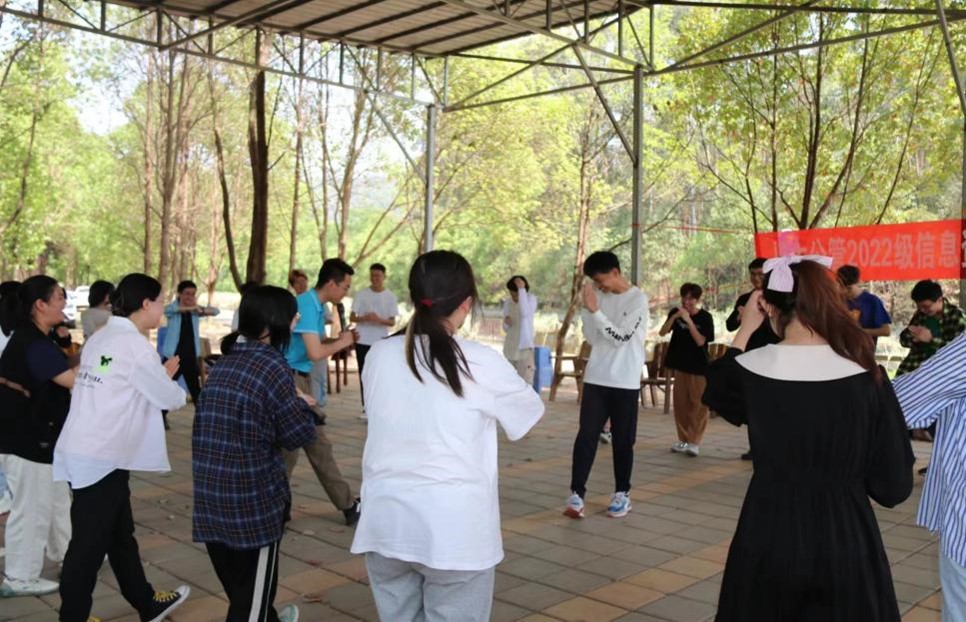 凝聚产生力量,运动绽放活力。为进一步增强同学们的凝聚力和向心力,丰富业余文化生活,更好地推动师生交流,4月15日下午十大买球的正规网站2022级信息资源管理专业于映月湖素质拓展基地成功举办了专业素质拓展活动。本次活动由素质拓展和师生交流两个板块组成,由信息资源管理系教师袁莉、范炜、董凯宁、张晓娟、杨海娟和2022级信息资源管理系全体同学共同参与。