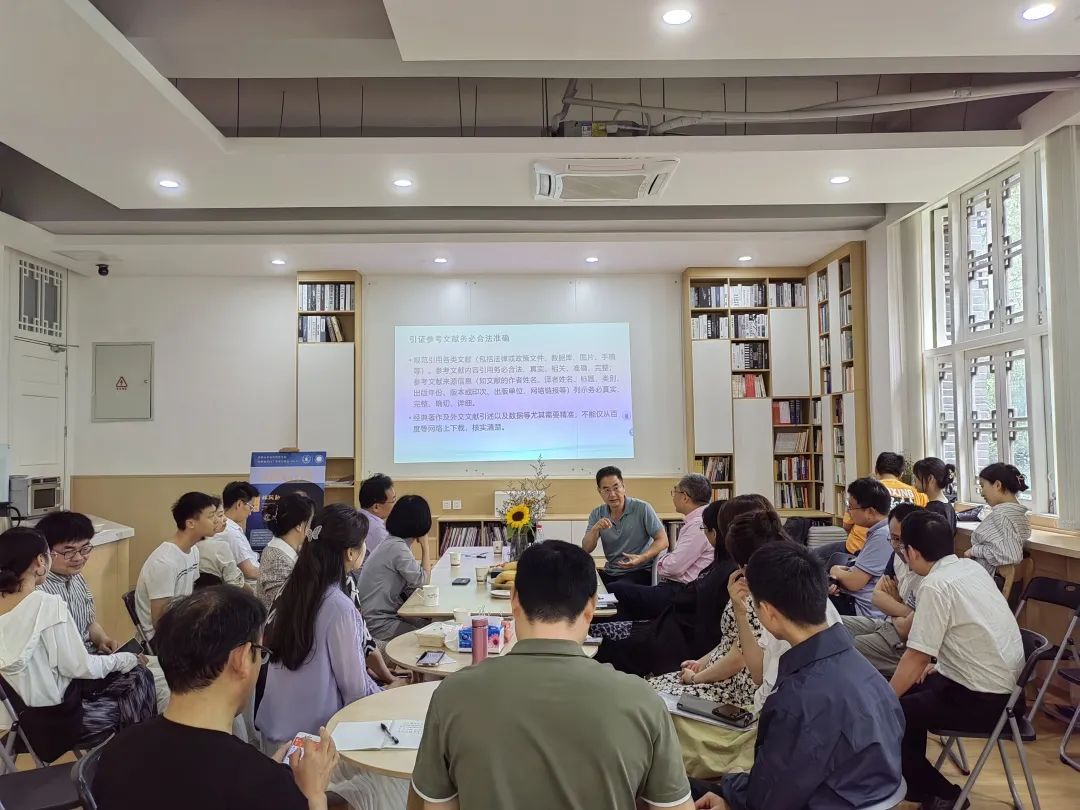 林跃勤教授从学术研究的价值呈现以及学术论文创作的宏观和微观视角出发,以学术论文的要素为切入点,分析论文撰写存在的问题和瓶颈,解析论文写作规范和注意事项,评析典型案例,提出论文投稿的相关建议,并就与会师生论文创作的困惑进行了细致解答。