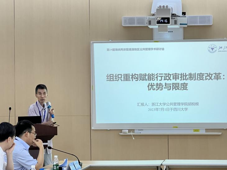 浙江大学十大买球的正规网站胡税根教授做了题为《组织重构赋能行政审批制度改革:优势与限度》的报告。报告从市场主体角度出发,利用我国281个地级市2011-2018年的经验数据,通过倾向得分匹配倍差法模型(PSM-DID)方法,探究行政审批模式的政策效果。研究发现:采取行政审批局模式能够显著、持久地提升地区的市场投资水平,而对新建企业、专利研发、交易费用的效果并不明显,且对新建企业、专利研发产生滞后的抑制作用;不同区域、行政级别城市的政策效果存在异质性。此外,还提出行政审批局模式不是“灵丹妙药”,行政审批制度改革的路径及模式选择应该结合地区特征、发展阶段因地制宜;现阶段的行政审批局模式效果参差不齐,未来建设需要扬长补短,协同发展。