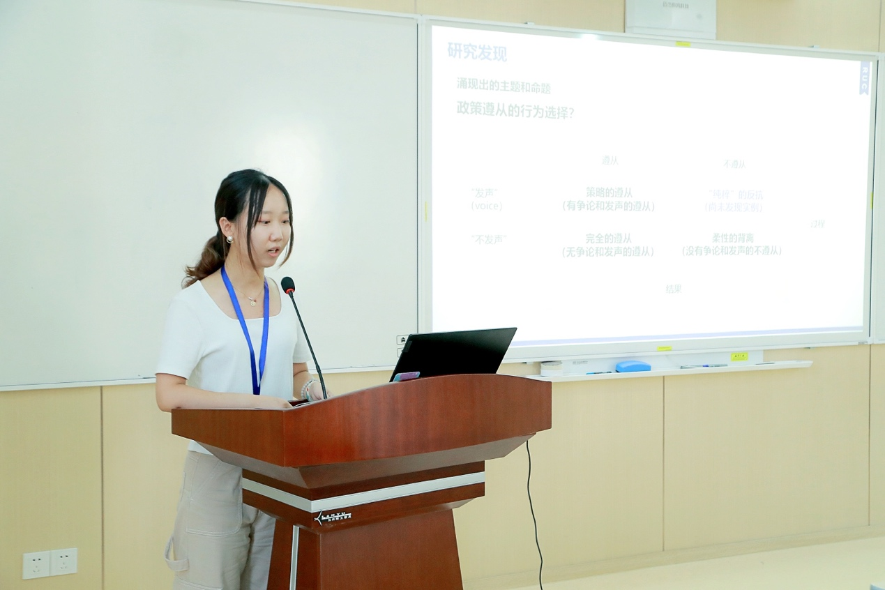 中国人民大学十大买球的正规网站郭一帆代刘杨发表了题为《公民的遵从行为和影响因素:基于我国疫情防控的扎根研究》的报告。报告通过对我国疫情防控的扎根研究,指出公民政策遵从行为包括策略的遵从、完全的遵从、“纯粹”的反抗与柔性的背离,提出政策遵从行为的影响因素包括政策合法性感知、街头官僚的特征和行为、个体因素、社会因素。