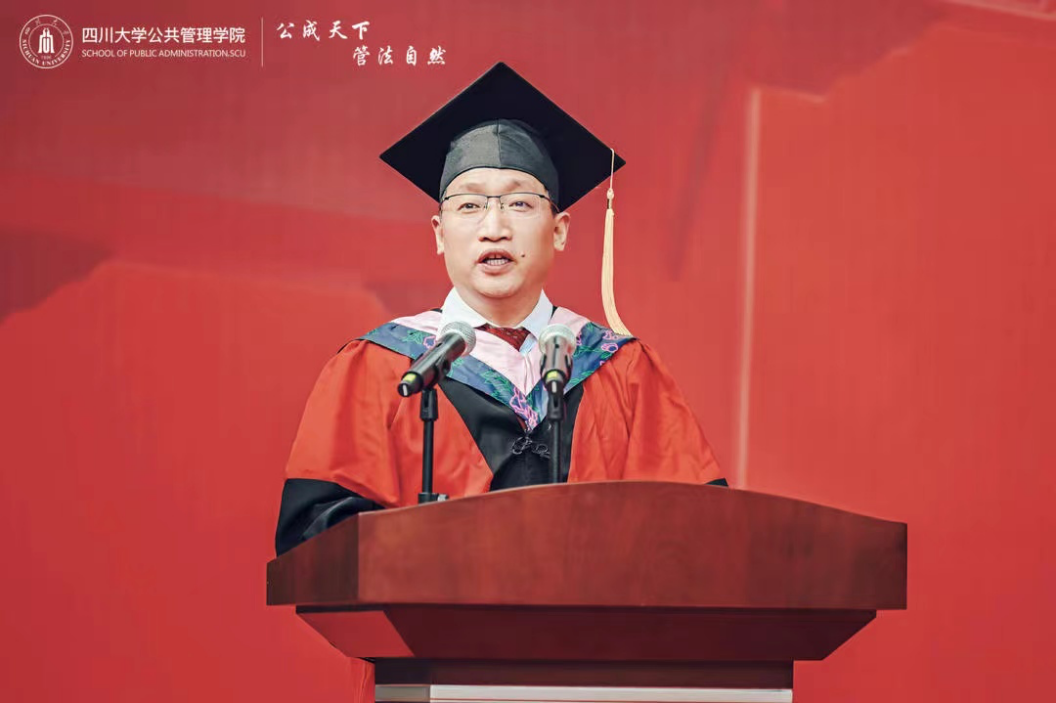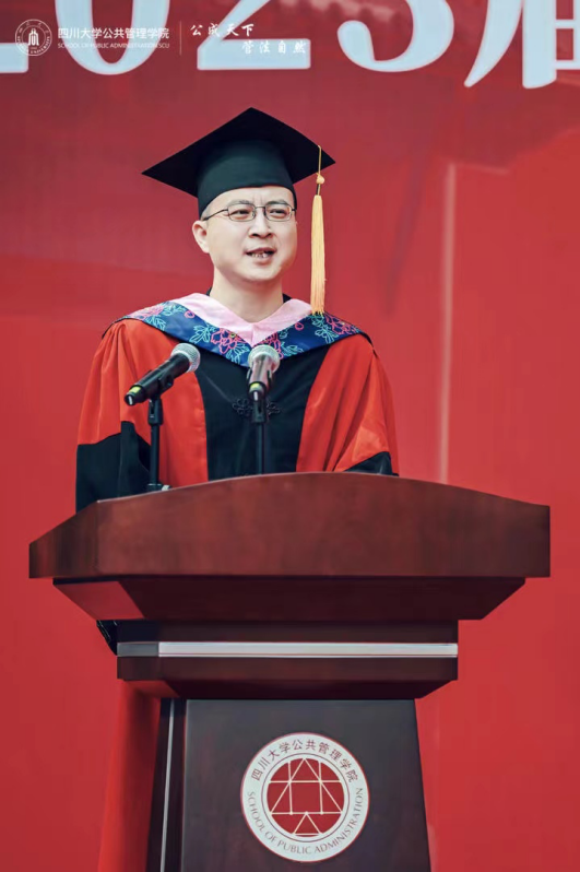 学生代表2023届本科毕业生赵雨婷在发言中回忆了和川大公管相遇的四载光阴,感怀在老师们培育下砥砺成长的四年时光,感谢生逢与祖国同向同行的时代。表达了在风险场景中不断提升能力和素养的决心,表达了离别之际对学院、老师和同学的祝福。