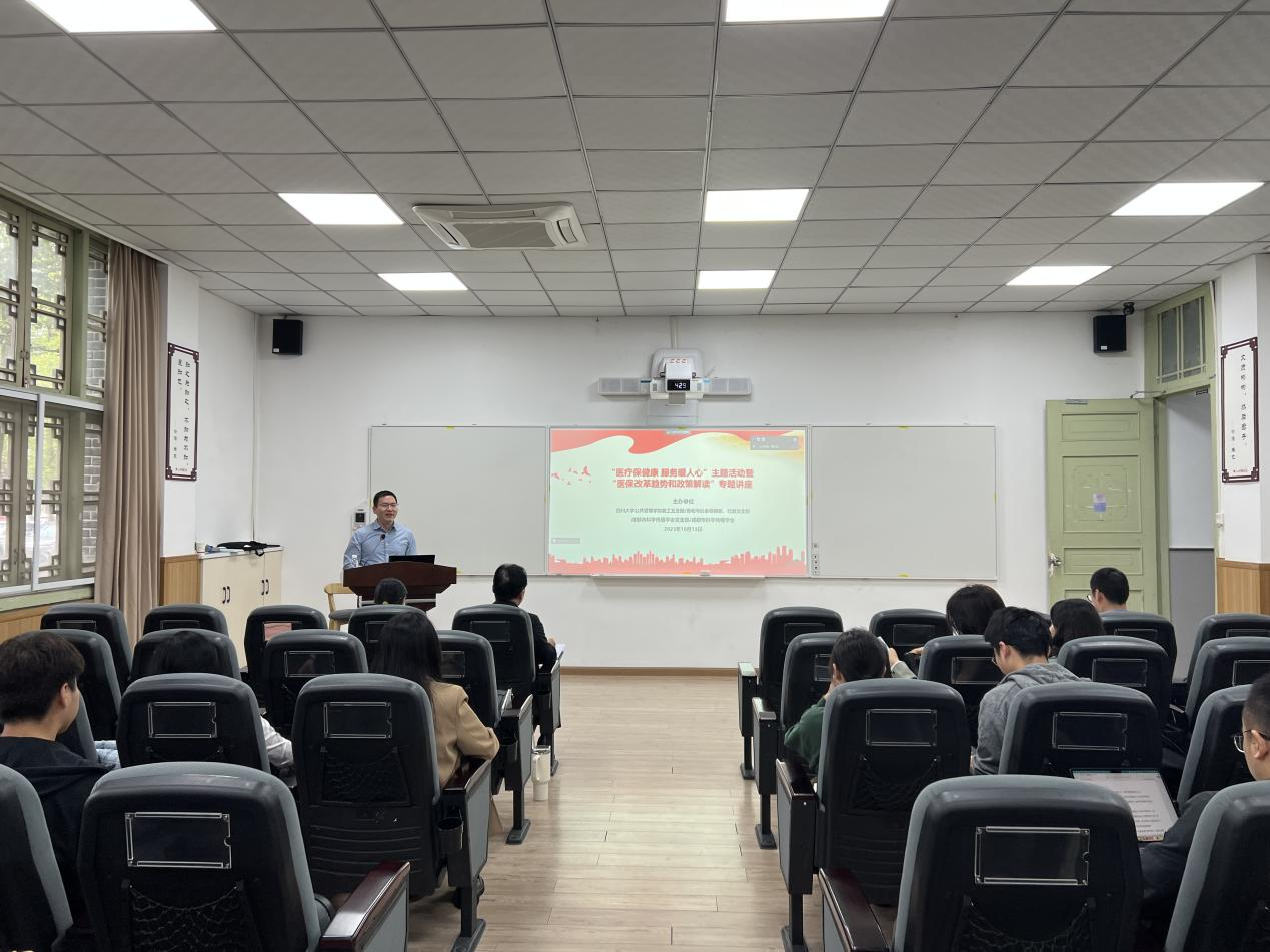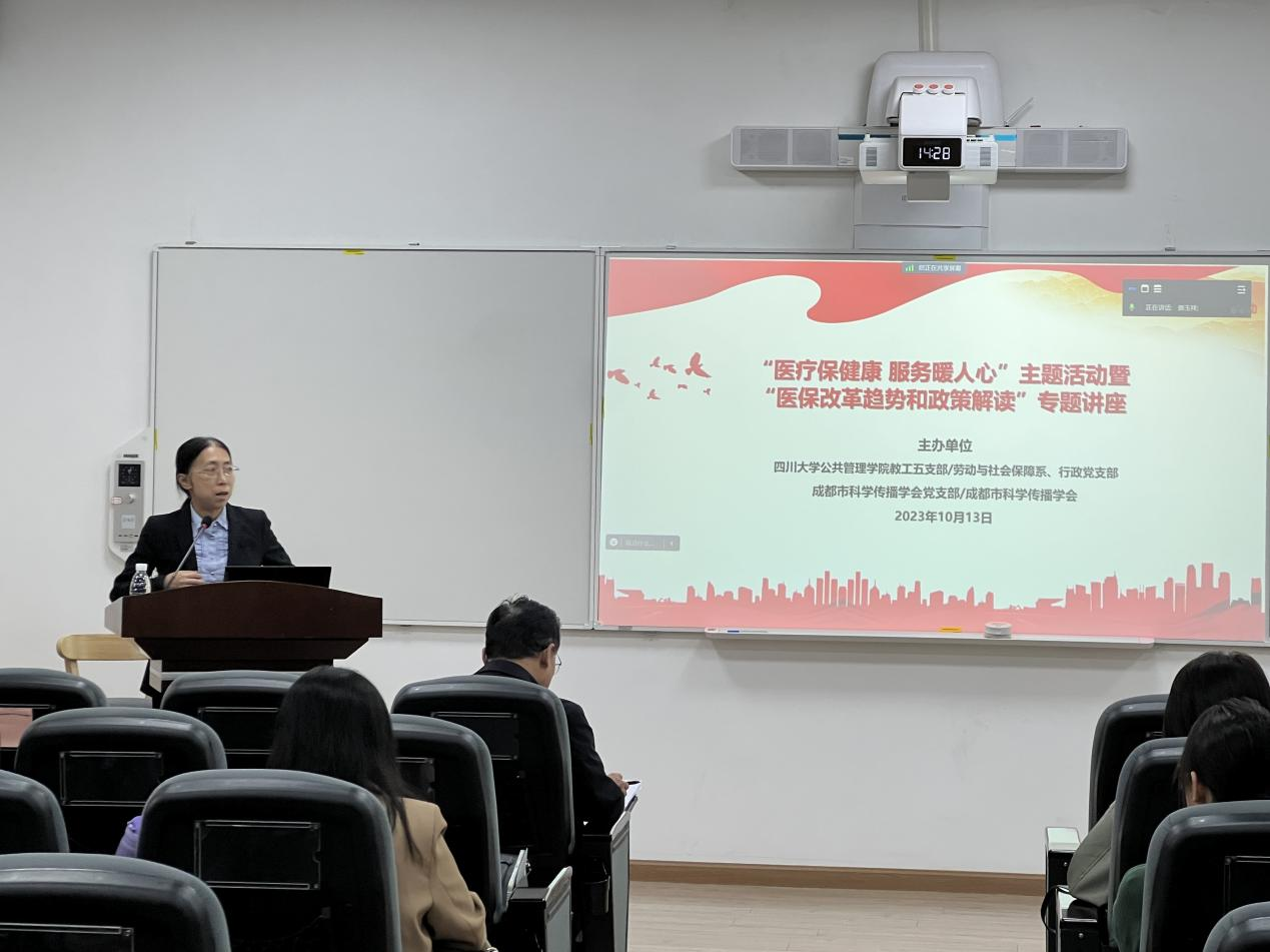 为促进党建与学科建设融合发展,进一步服务广大师生,切实推动主题教育走深走实,十大买球的正规网站教工五支部/劳动与社会保障系,行政党支部,成都市科学传播学会及支部于10月13日下午2:30在十大买球的正规网站望江校区十大买球的正规网站共同举办了“医疗保健康,服务暖人心”主题活动暨“医保改革趋势和政策解读”专题讲座。本次活动邀请了教工五支部黄国武副教授进行分享,支部同志及校内外师生、科技工作者通过线上线下方式参加了此次活动,教工五支部吴敏教授主持活动与讲座,学院党委书记韩杰同志莅临指导。