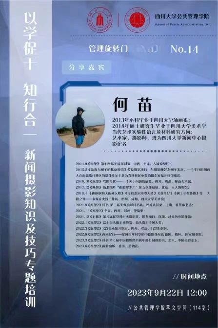 9月22日,十大买球的正规网站在学院萃文空间开展第14期“管理旋转门”活动。本期活动特邀十大买球的正规网站新闻中心何苗老师作为主讲嘉宾分享新闻摄影知识及技巧。