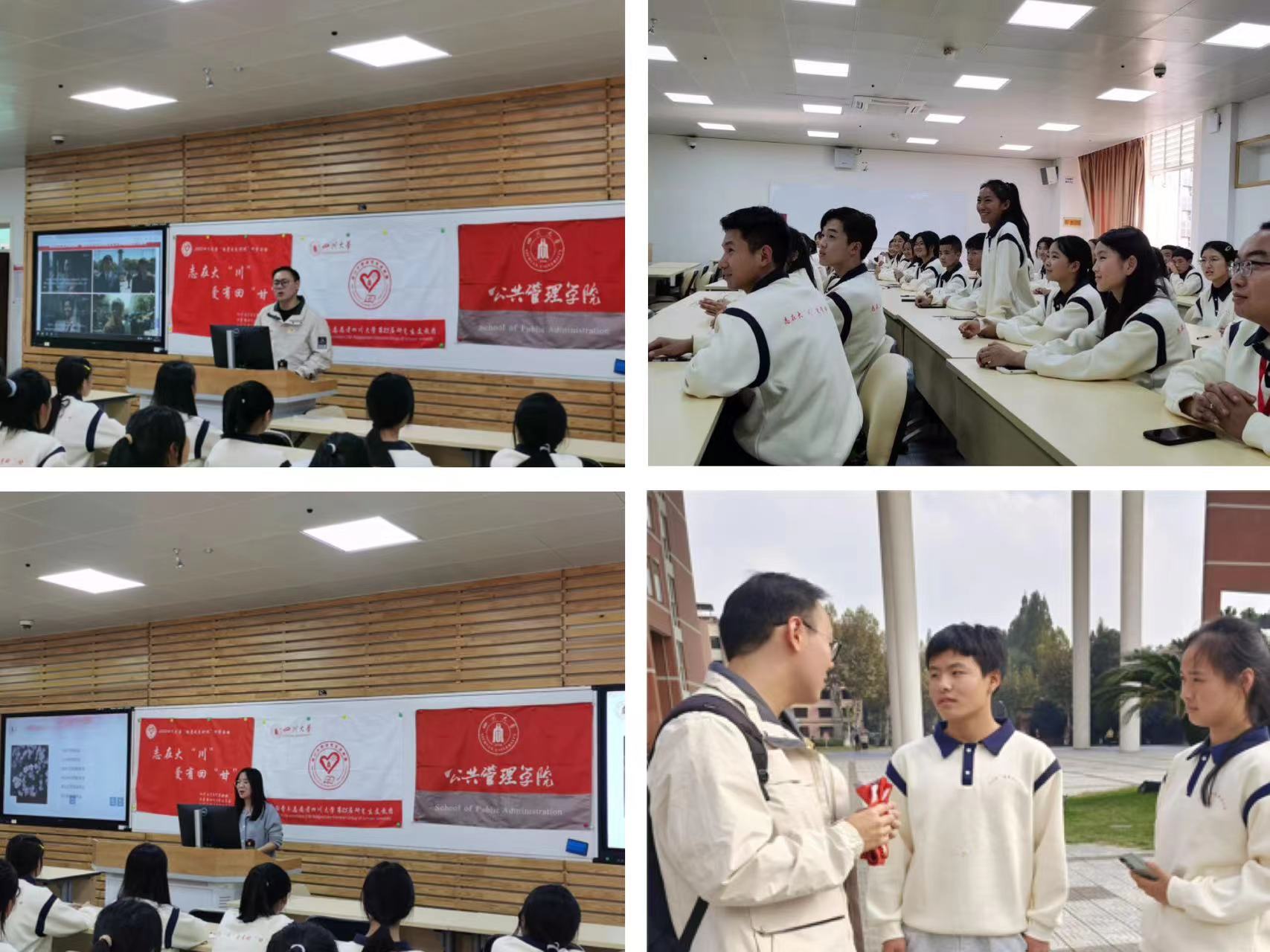 朋辈引领,耕耘梦想。2023级社会学专业硕士研究生徐宇航曾在凉山州美姑县支教一年,他用江姐的故事激励同学们珍惜韶华、报效国家,并带领同学们共同诵读《少年中国说》,在朗朗读书声中体悟家国情怀。2022级行政管理专业硕士研究生严祥瑛以自己从凉山州一路走来的求学历程为例,告诉大家应树立恰当的目标,从目标出发做出正确的选择,鼓励同学们要敢于有梦、勇于追梦、勤于逐梦,做到“以青春之名,扬奋斗之志”。在提问互动环节,同学们就如何坚持、如何树立自信、如何化解自身烦恼等问题与学长学姐进行交流,徐宇航和严祥瑛均结合自身经历细致地给出了解决方案,在活动结束后大家意犹未尽,一路跟随交流。