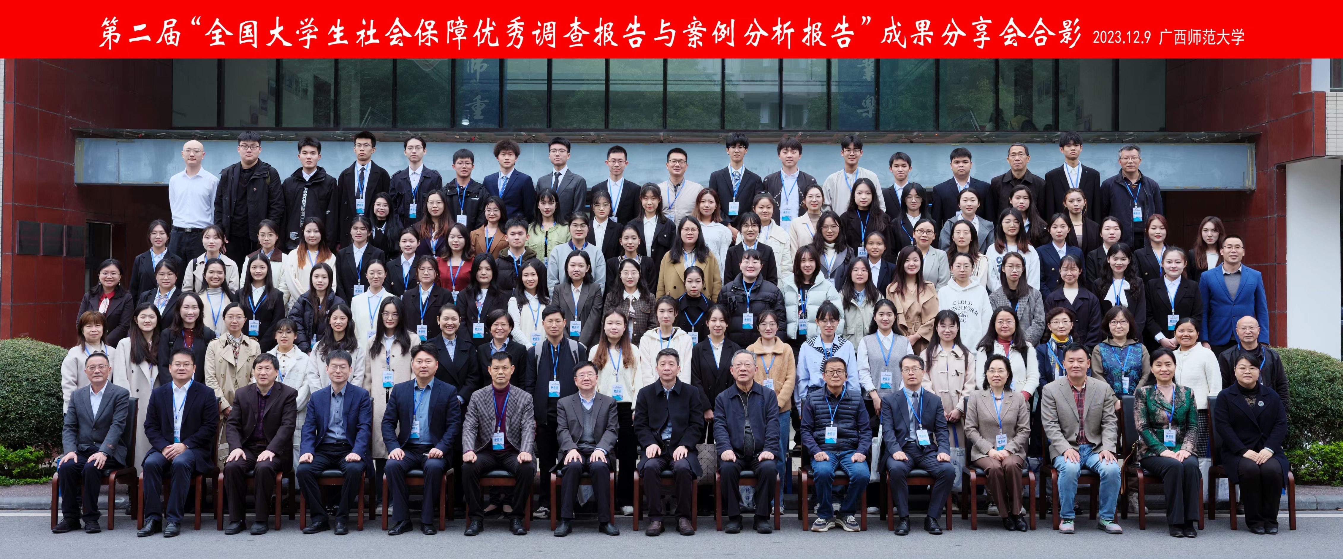 12月9日,为了鼓励社会保障专业在校大学生从课堂走向社会,发扬当代大学生“知行合一”精神,全面提升社会保障专业人才培养质量,由中国社会保障学会和广西师范大学主办,中国社会保障学会教学委员会和广西师范大学政治与十大买球的正规网站承办的第二届“全国大学生社会保障优秀调查报告与案例分析报告”成果分享会在桂林成功举行。