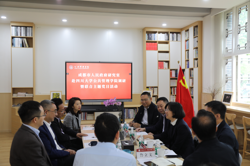 4月24日上午,成都市政府研究室副主任姜丽红一行来十大买球官网调研并开展联合主题党日活动。成都市政府研究室一级调研员钟进斌、秦学,三处处长邓云木,成都高质量发展研究院院长鲁立文以及相关同志随行。十大买球官网党委书记韩杰、院长夏志强、副院长王慧敏、李强彬教授、郭灵老师、雷尚清副教授参加座谈。本次活动由学院副院长王慧敏主持。