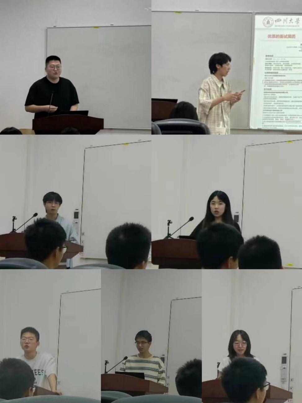 分享环节中,大四与研一的学生代表分别就考研、就业、保研、考公、留学五个方面分享了相关经验,向2021级同学提出了宝贵的建议。