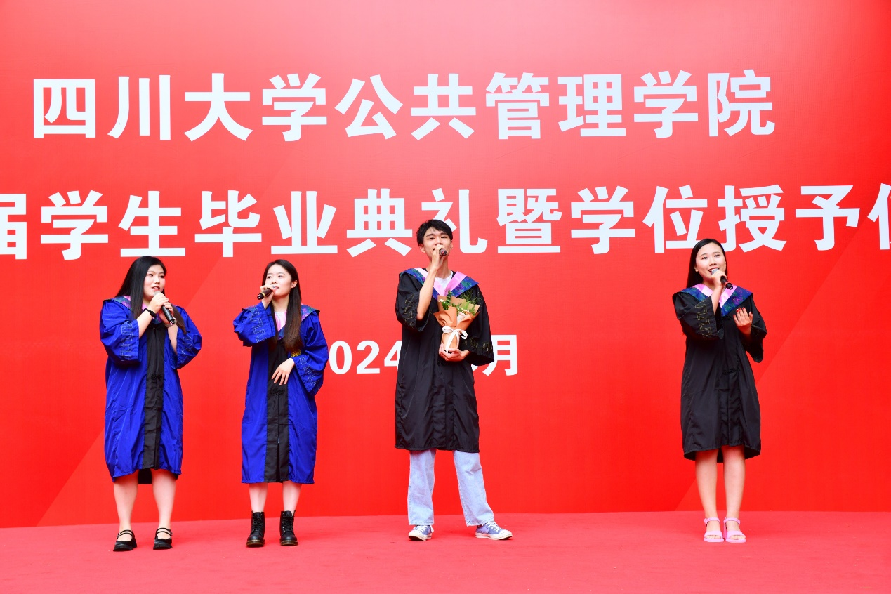 四位毕业生通过典礼前的暖场表演吟唱出了834名毕业生对校园美好生活的眷恋与对未来的无限期待。