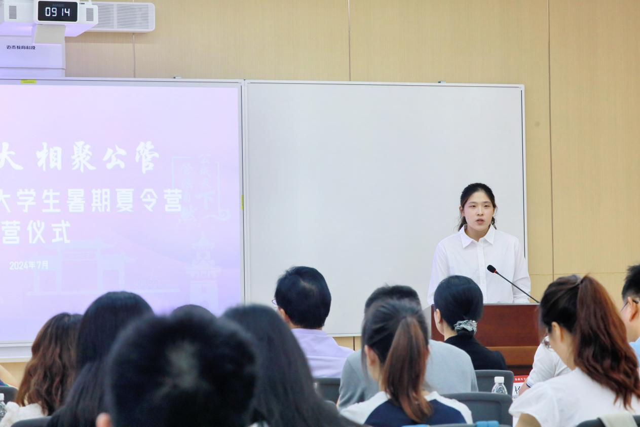 社会保障系杨帆老师作为教师代表发言。杨老师以“双向奔赴、成就彼此”为主题,从学术自由、继续深造、高质量就业三个方面解答了营员们所关心的问题“加入川大公管学院可以得到什么?”,希望营员们在和川大公管双向奔赴的过程中互相成就。