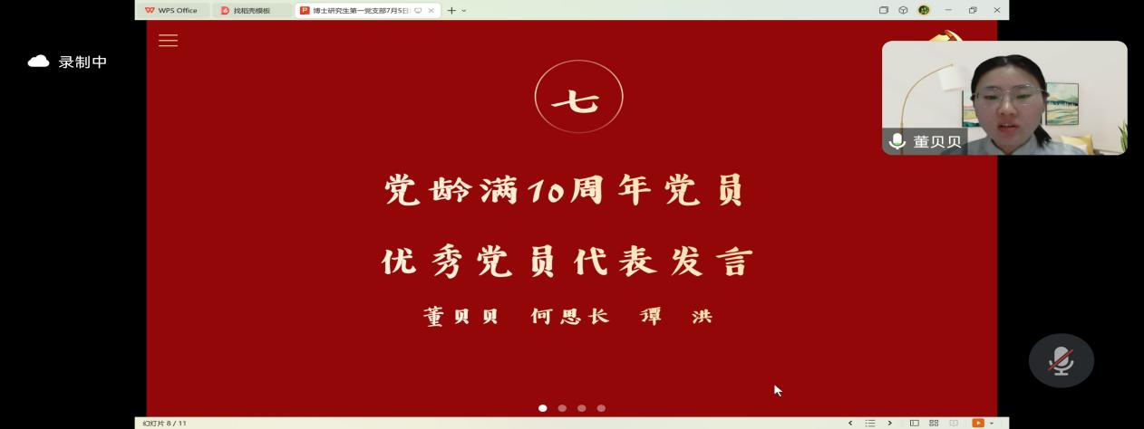 支部书记李岚带领在场党员一起重温入党誓词,重忆入党经历、重问入党初心,强化了博士生党员的政治意识、大局意识、核心意识、看齐意识。