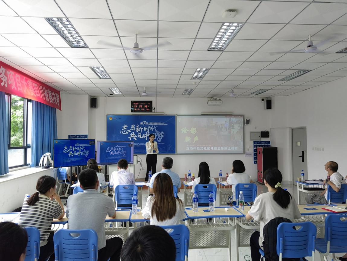“绘影新声”互动体验式社区儿童应急安全教育项目团队秉持“展方寸地图,绘童心社区,守平安未来”理念,开展一站式社区儿童应急安全教育。从灾前、灾时、灾后三个维度出发,通过绘本场景带入,运用桌面推演、可移动模型、VR模拟三大类教具,提供互动式训练,达成教育一个儿童,带动一个家庭,影响一个社区的成效。
