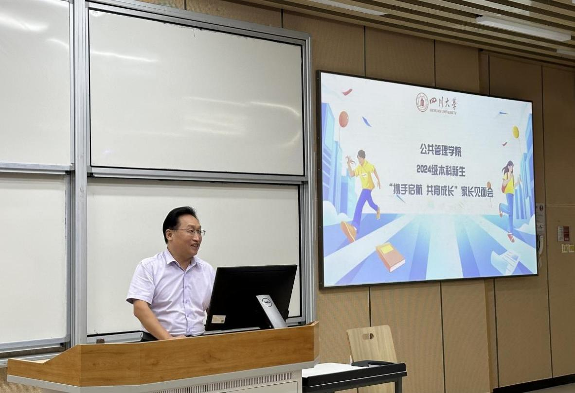 韩杰向与会家长详细介绍了十大买球的正规网站及十大买球的正规网站的历史沿革,展现了学校丰硕的研究成果、优质的教育资源与先进的育人理念。韩杰表示,学院将始终践行“公成天下,管法自然”的院训,进一步发挥多学科交叉优势,培养高层次、复合型、应用型的公管人才。