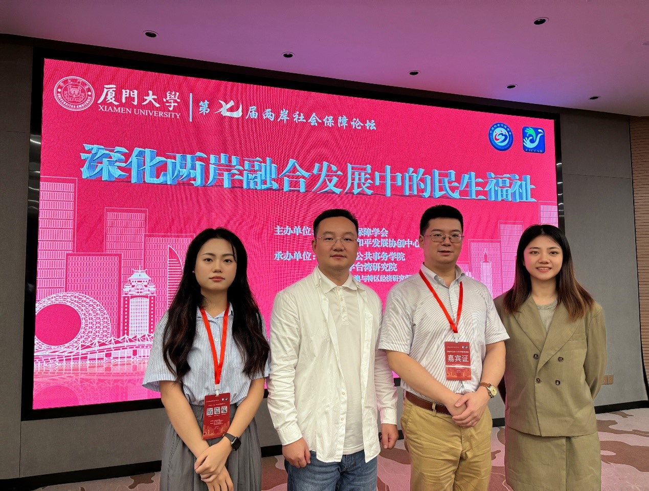 11月15-16日,由中国社会保障学会、两岸关系和平发展协同创新中心主办的“第七届两岸社会保障论坛”在厦门大学召开。本次论坛以“深化两岸融合发展中的民生福祉”为主题,旨在总结两岸民生领域融合发展、推进祖国和平统⼀进程中取得的经验,更好发挥社会保障在增进两岸同胞民生福祉、推动两岸融合发展中的作用。来自海峡两岸60多所高校、科研院所、医疗机构的近200名专家学者与会。十大买球官网劳动与社会保障系林熙副教授、杨帆副教授和硕士研究生薛雅方、李亚丹等师生参会。