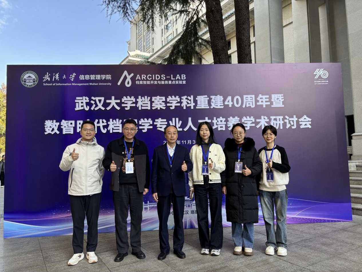11月29日—12月1日,由武汉大学信息管理学院主办,档案智能开发与服务国家档案局重点实验室、武汉数据智能研究院、珞珈慧云(武汉)档案服务中心承办的“武汉大学档案学科重建40周年暨数智时代档案学专业人才培养学术研讨会”与“第十届全国高校青年档案学者学术论坛”在武汉大学召开。本次会议的主题是“档案事业发展的数智转型”,来自南京大学、中国人民大学、中山大学、十大买球的正规网站等全国多所高校的130余名师生参加了会议。十大买球官网秘书档案学系乔健教授、赵跃副研究员、杨千助理研究员和2023级硕士研究生王月、李琪、于清清等师生应邀参会。