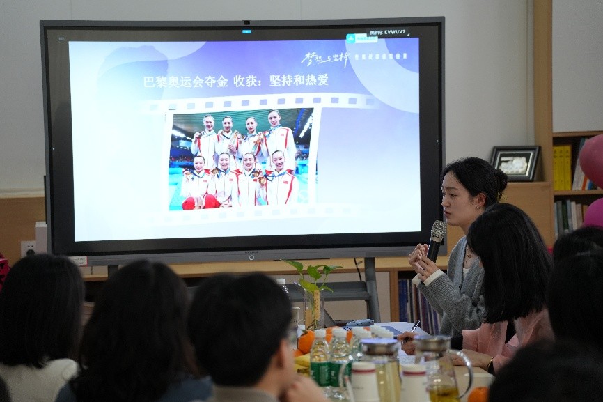 肖雁宁以《坚持与梦想:在挑战中绽放自我》为题展开分享。她以时间线为脉络,回顾了2013年入选四川省花样游泳队、2014年进入国家队、2017年布达佩斯游泳世锦赛夺冠、2023年杭州亚运会夺冠、2024年巴黎奥运会夺冠等关键节点。“目标就是升五星红旗,站在赛场上就是一名为国而战的战士”,她以自身“小我”之力铸就了体育强国的“大我”之梦。