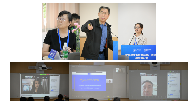 在会议主旨报告阶段,何文炯指出,数字化时代的一个重要特征是非正规就业多,应着力探讨面向全民的社会保障项目;刘军胜详细介绍了中国在新就业形态劳动者权益保障方面的政策与实践;国际劳工组织高级专家佩索·安娜罗莎(Pesole, Annarosa)介绍了监管平台工作的全球方法,包括扩大劳动和社会保障、监管平台工作时间、算法使用透明等;中国人民大学林嘉教授介绍了新就业形态劳动者权益保障的相关立法政策,强调当前的立法工作应着重解决劳动关系认定、算法管理下的劳动基准等问题;十大买球的正规网站蒲晓红教授介绍了新就业形态劳动者基本养老保险的制度设计和现实情况,并指出从制度全覆盖到人员全覆盖尚有距离。主旨报告由十大买球的正规网站党委副书记罗亚玲教授主持。