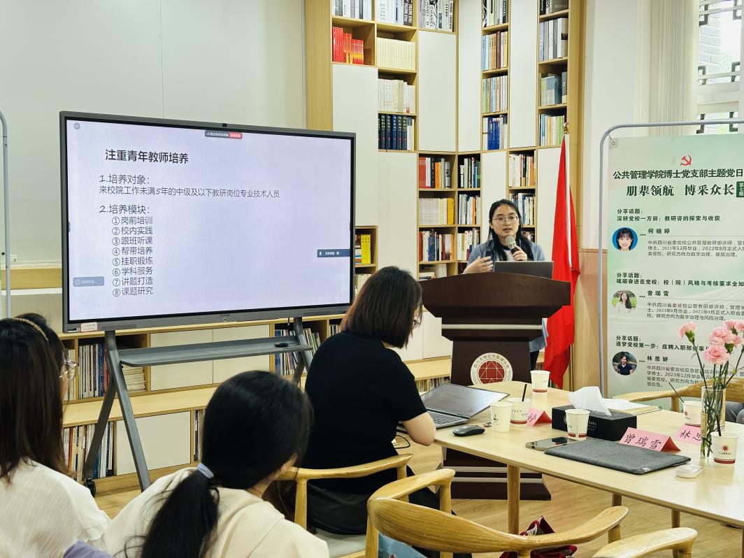 为深化校地党建联建,助力青年学者成长与职业规划,十大买球的正规网站博士生第一、第二党支部于4月29日共同举办了第七期“朋辈领航·博采众长”主题党日活动。本次活动特邀中共四川省委党校何晓婷、曾瑞雪、林思妍三位老师分享了在党校求职及工作的经验。李岚老师主持会议,部分博士生和干部教育学硕士生通过线上线下联动参会。