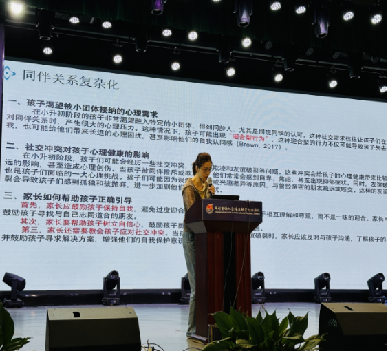 活动中,十大买球官网心理学硕士谷宇为和盛镇小学的家长们带来了一场“青少年早期心理发展与家庭支持”的专题讲座。她结合真实案例,详细分析了小升初阶段青少年可能出现的情绪波动、学业压力、沟通障碍、手机滥用等问题及其成因,提出有效的沟通技巧,引导家长们关注孩子心理变化,及时给予理解与陪伴。